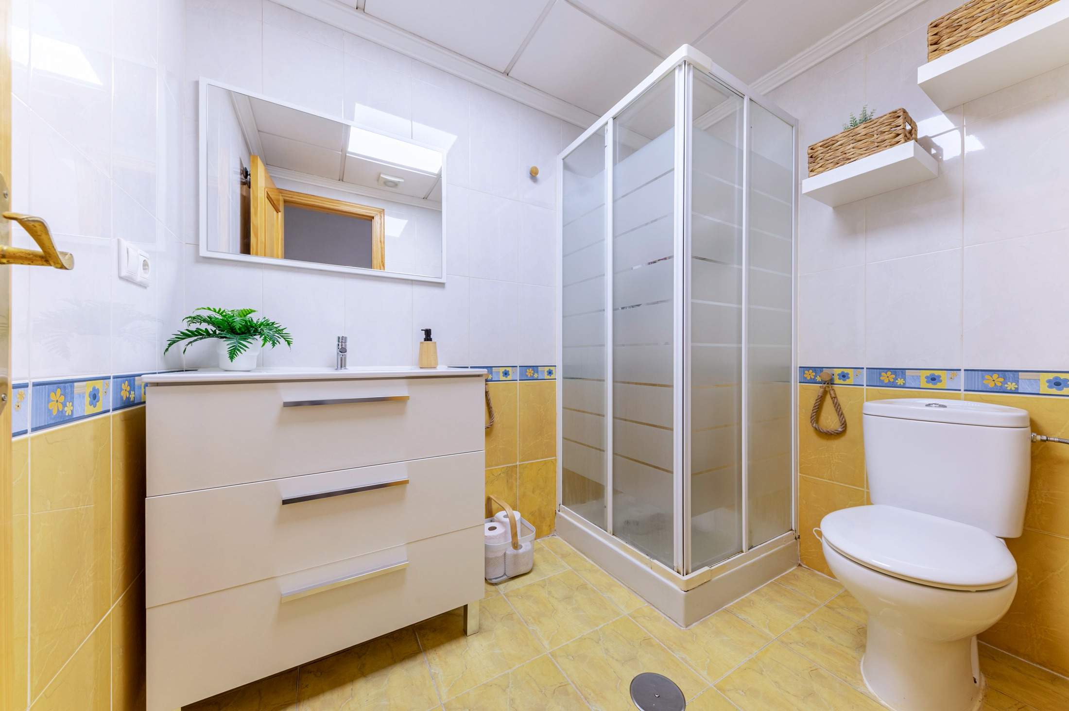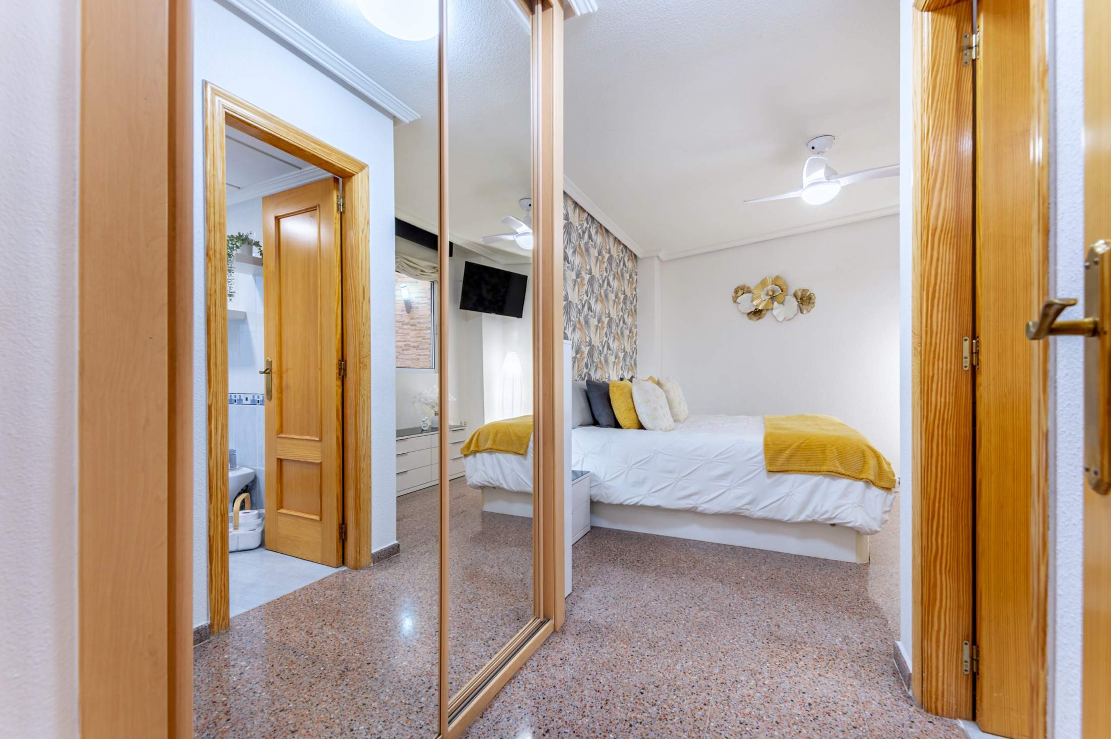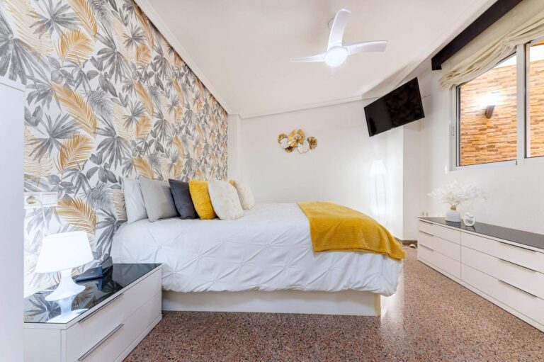 Dispone de dos dormitorios dobles, ambos volcados a sus propios patios interiores, algo poco habitual que aporta una tranquilidad difícil de encontrar: más silencio, más privacidad y una sensación constante de refugio. A esto se suman dos baños completos, un detalle que marca la diferencia en el día a día: mañanas más fluidas, más intimidad y menos prisas.