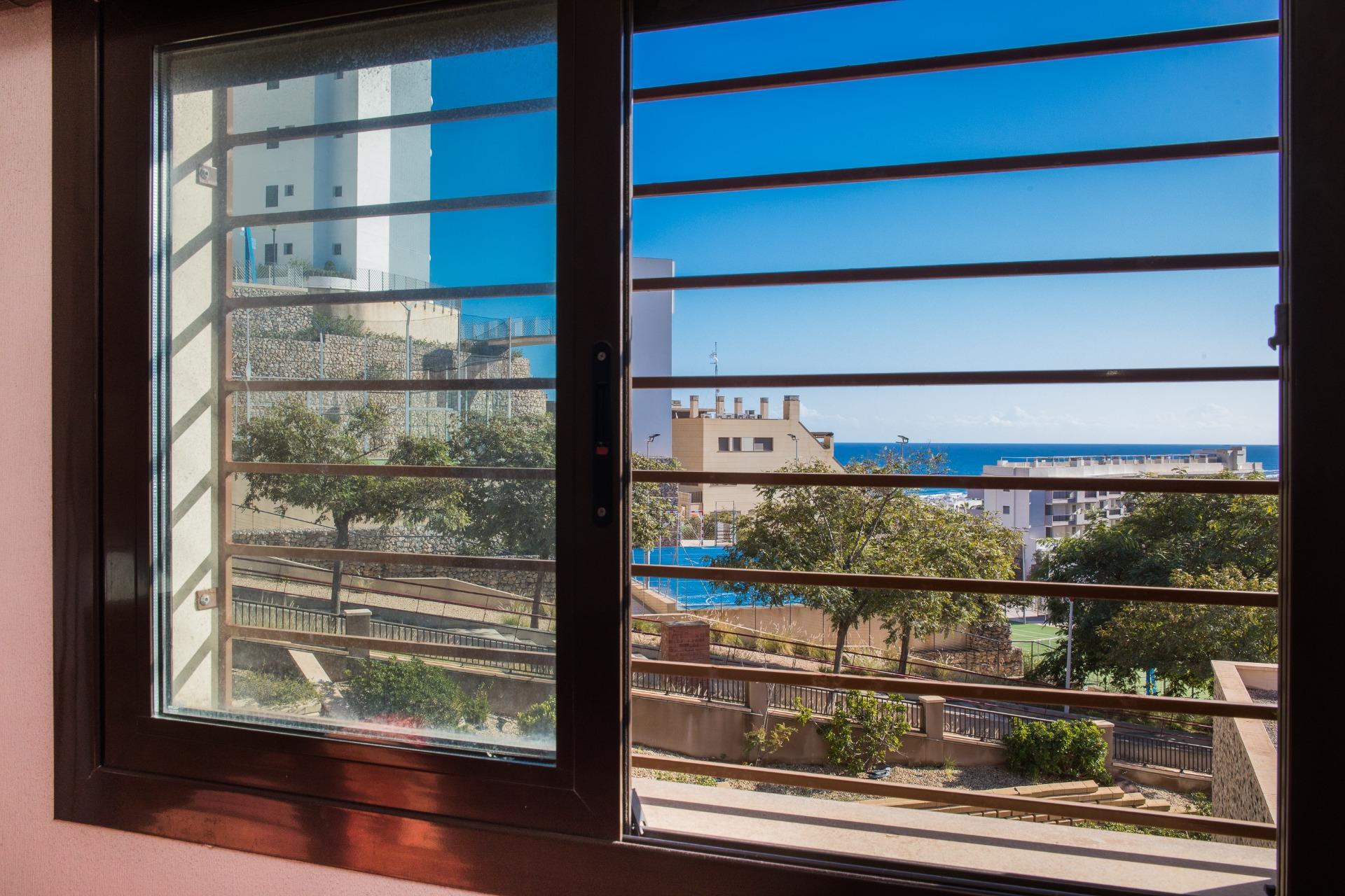 Vistas al mar desde dormitorio y plaza de garaje en subterráneo incluida en el precio.