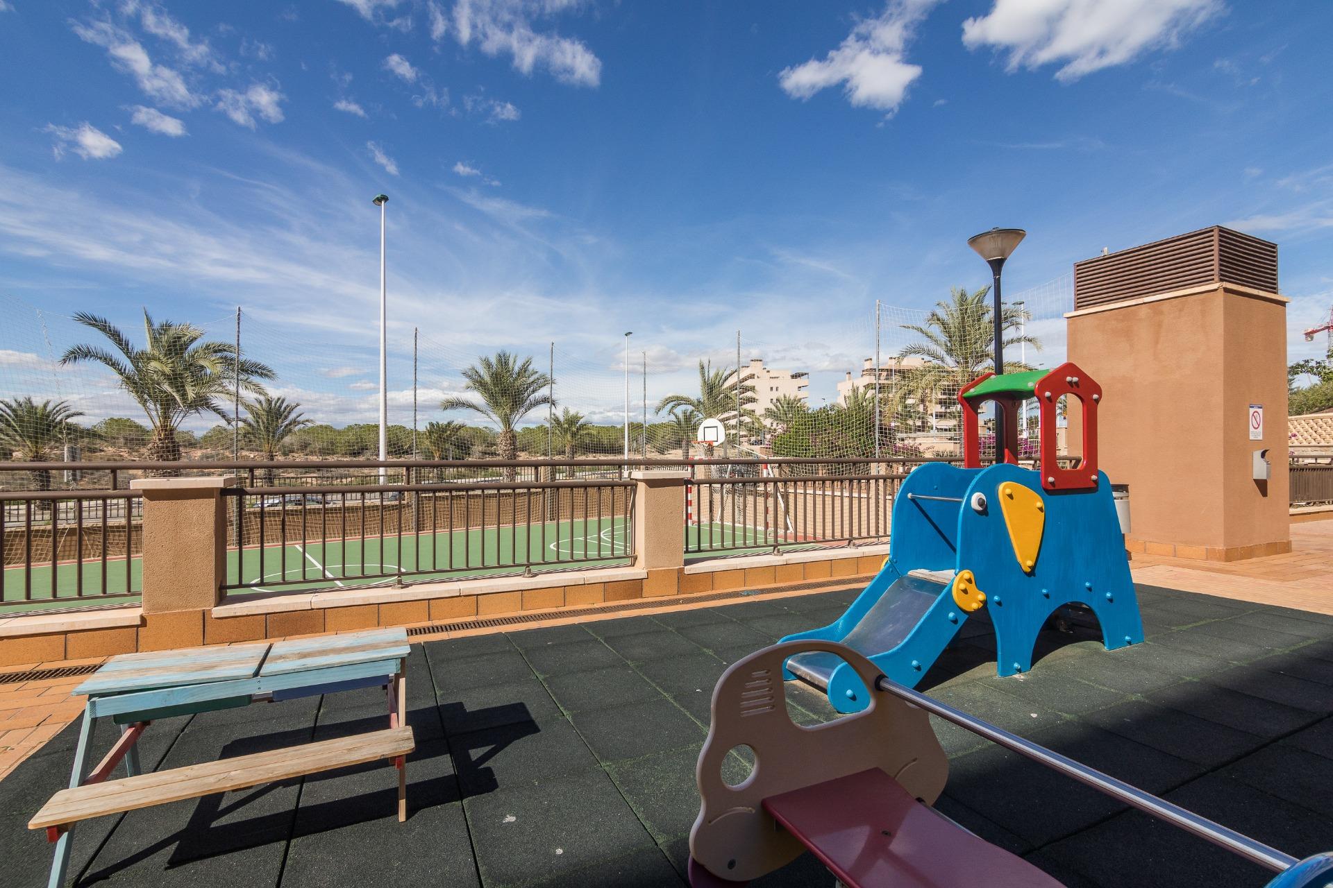 Dúplex en venta – ¡Tu hogar ideal para disfrutar en familia! , bungalow de 3 dormitorios en la urbanización con mas zonas comunes y mejores calidades de Arenales del Sol, a un paso del mar, acceso a Paseo Algeciras donde bajar suavemente al mar
