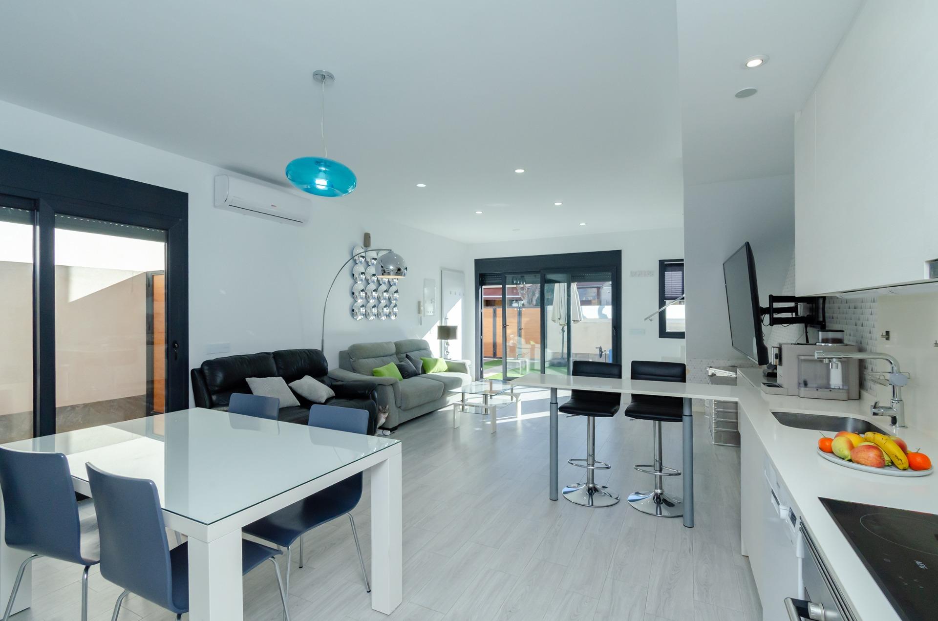 Descubre este elegante chalet independiente en una de las zonas más tranquilas de Pilar de la Horadada, donde cada día empieza con la brisa del mar y termina con atardeceres inolvidables.