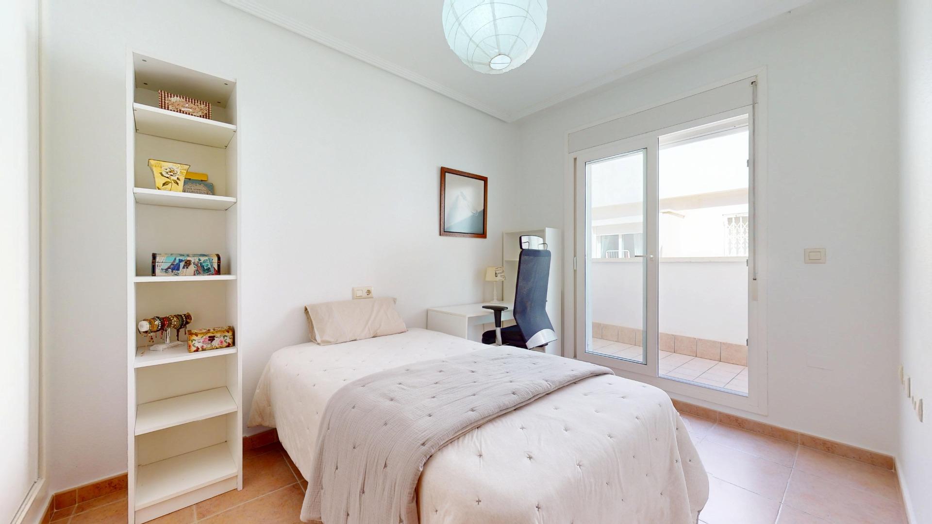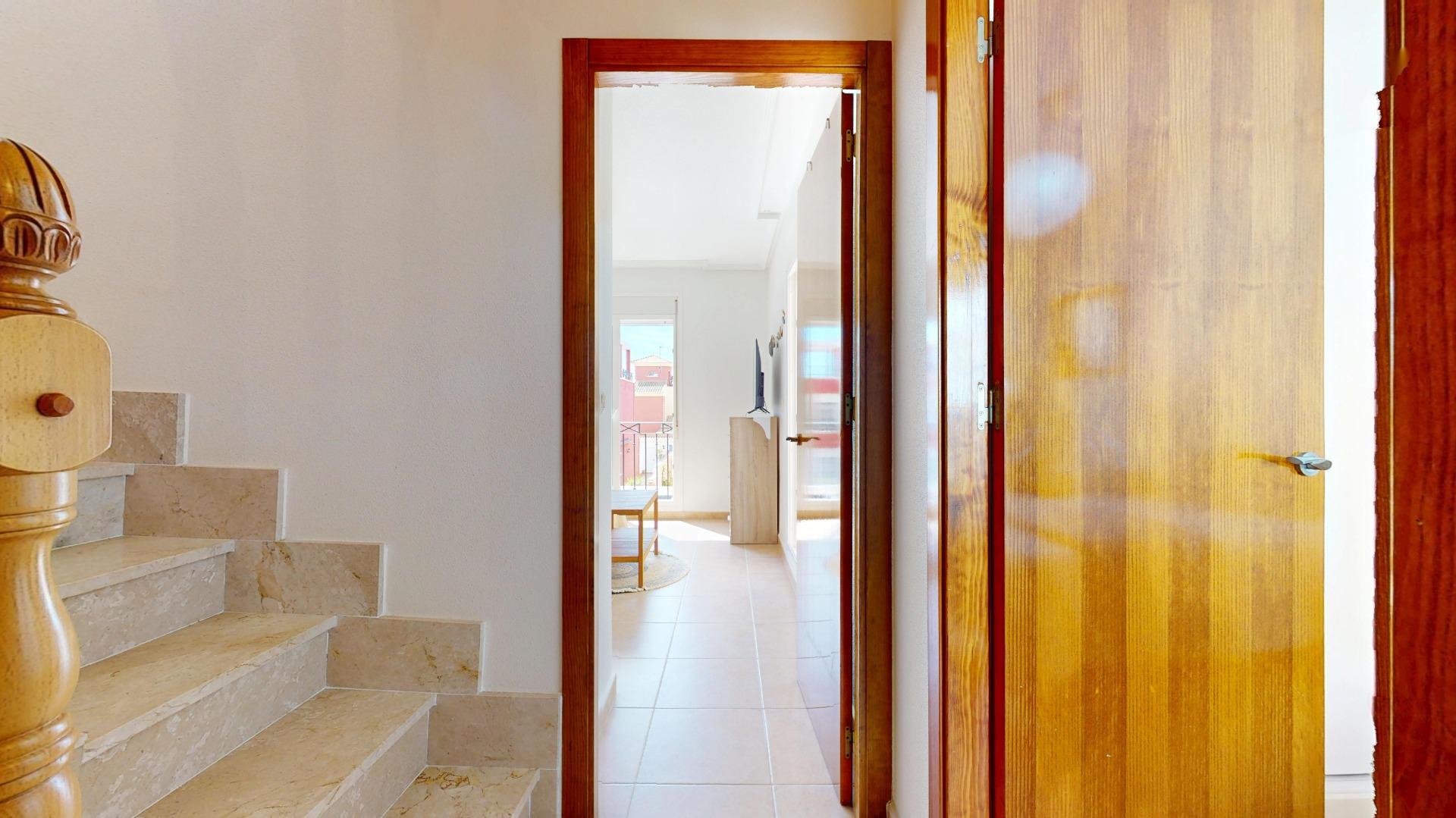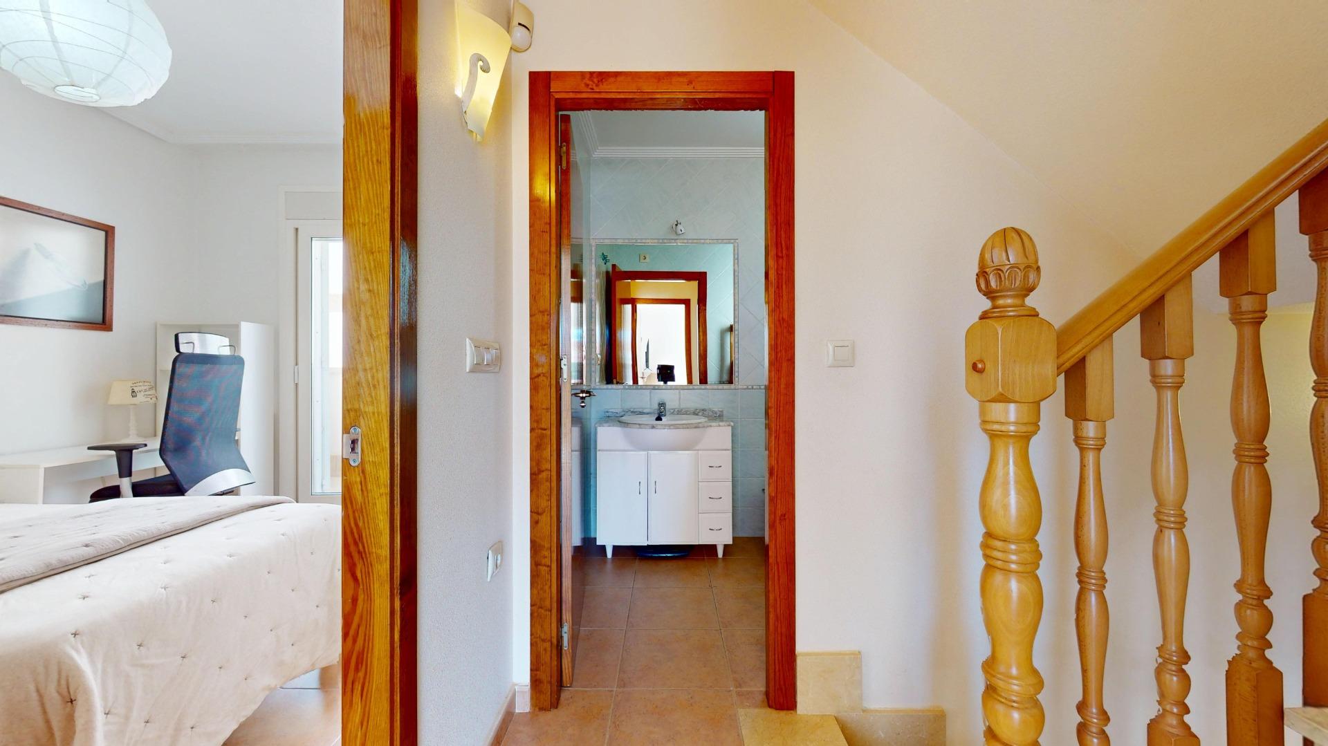 En la primera planta se ubican dos dormitorios, ambos con salida a amplias terrazas, lo que garantiza luminosidad y ventilación natural durante todo el día. En esta planta también encontramos un baño completo. Cabe destacar que toda la vivienda es exterior, lo que aporta una gran sensación de amplitud y bienestar.