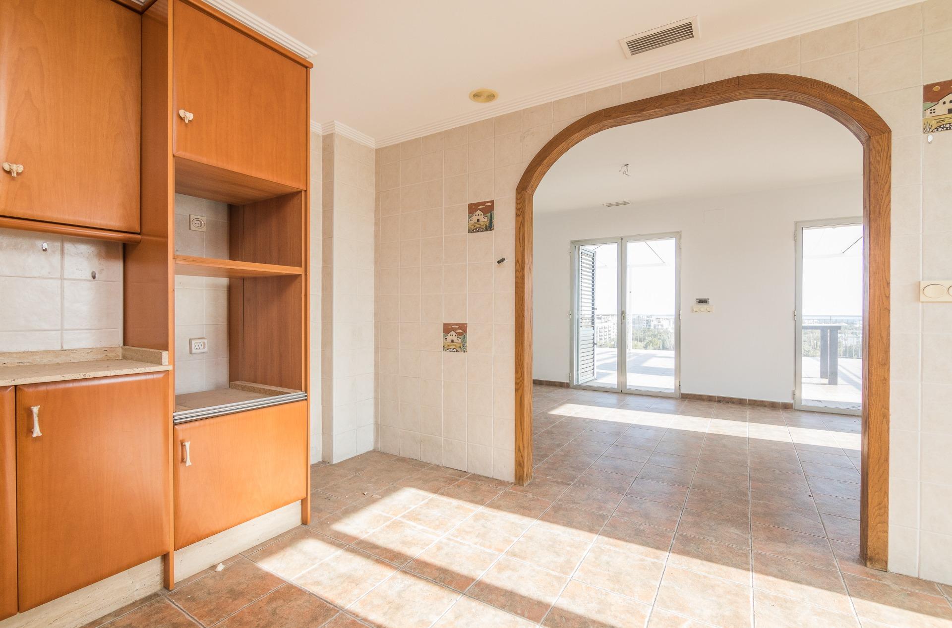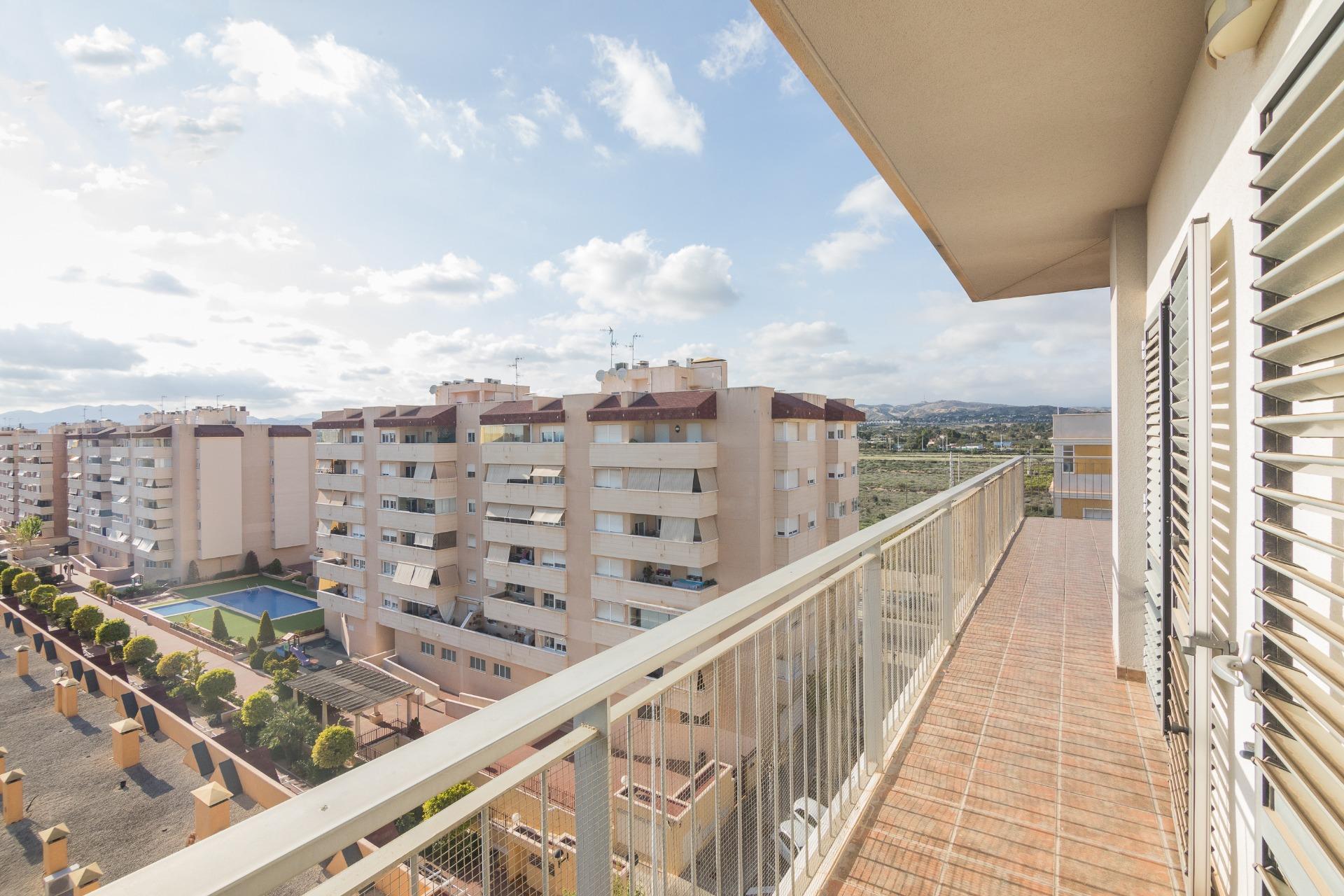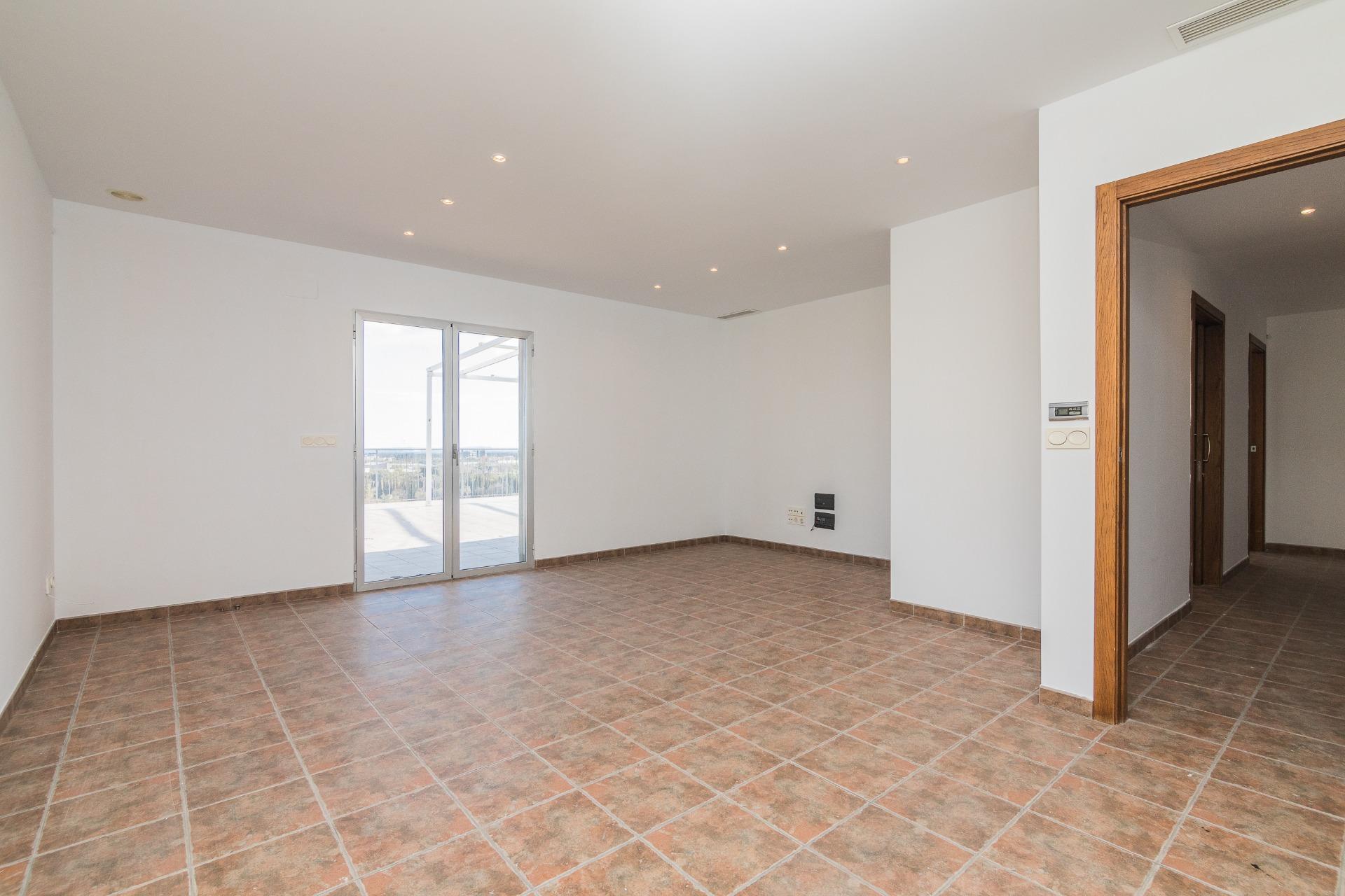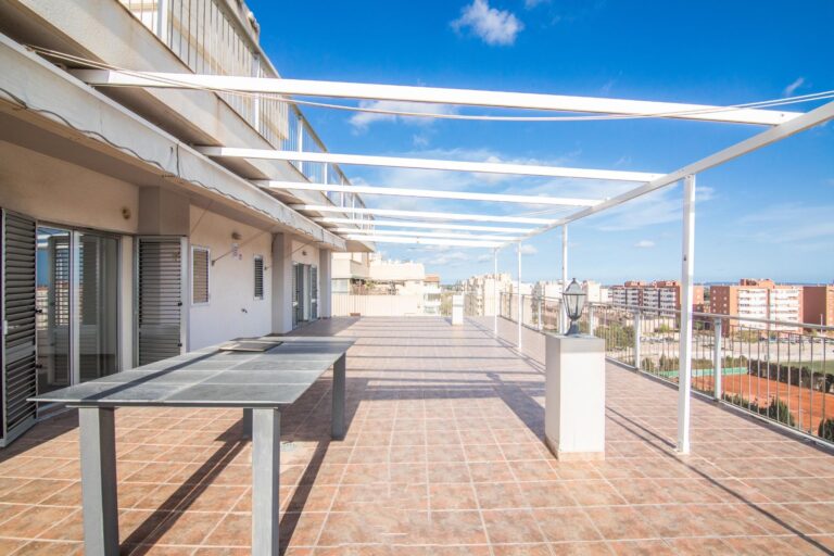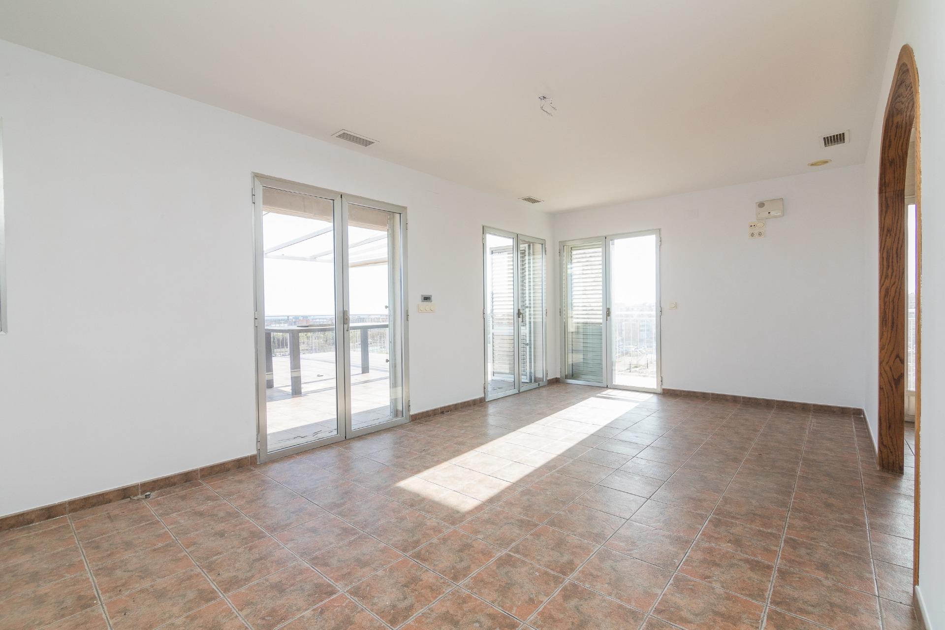 La vivienda cuenta con amplios espacios con 4 dormitorios, el de matrimonio cuenta con VESTIDOR Y BAÑO , un baño que da servicio al resto de la vivienda prestando comodidad y funcionalidad por su gran tamaño , con una eficiente distribucion tenemos una ESPECTACULAR COCINA COMEDOR y galería, IMPONENTE SALÓN muy luminoso y ventilado además de gozar de la virtud de estar comunicado con SU EXCLUSIVA TERRAZA QUE SE FUNDE CON EL PAISAJE HACIA LA CIUDAD DEPORTIVA SIENDO LO MAS IMPRESIONANTE DE ESTA VIVIENDA PORQUE ES VERDADERAMENTE ENORME. Desde allí podrás disfrutar de vistas panorámicas incluso el Mar Mediterráneo . La terraza está diseñada para ser un espacio ideal para relajarse o disfrutar con la familia, con diferentes orientaciones para percibir el sol a cualquier hora del dia. Cuenta con extra de aire acondicionado por conductos y toldo en terraza.