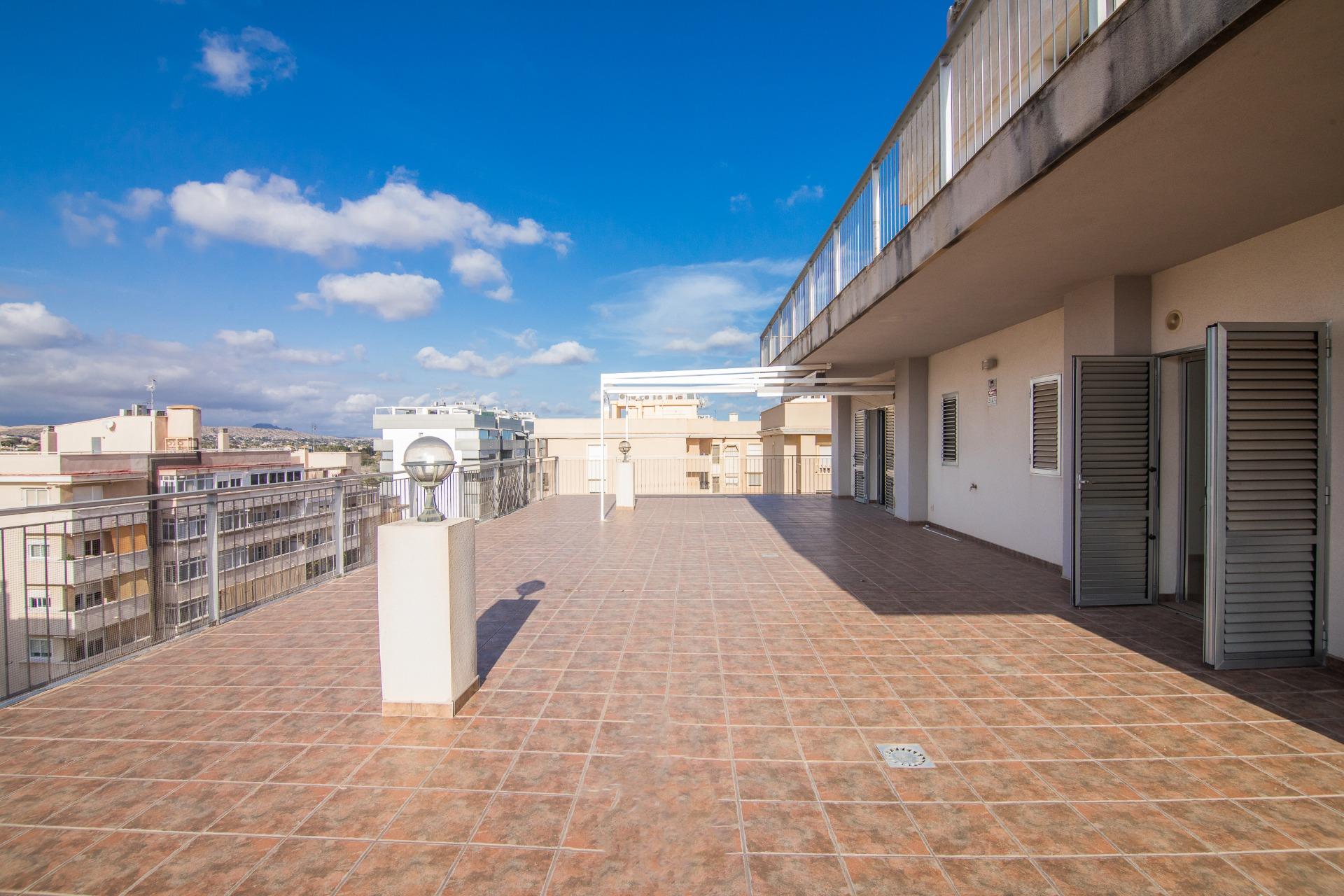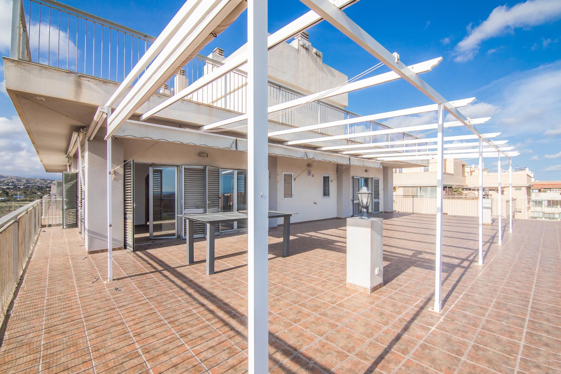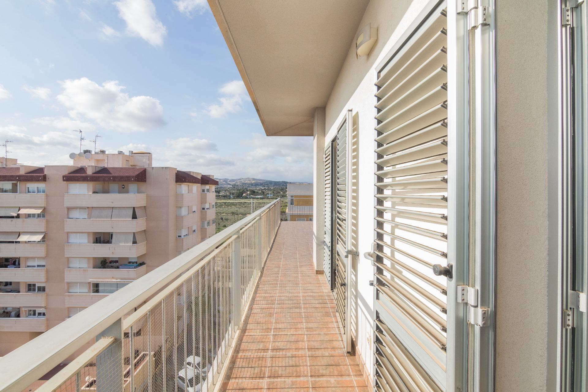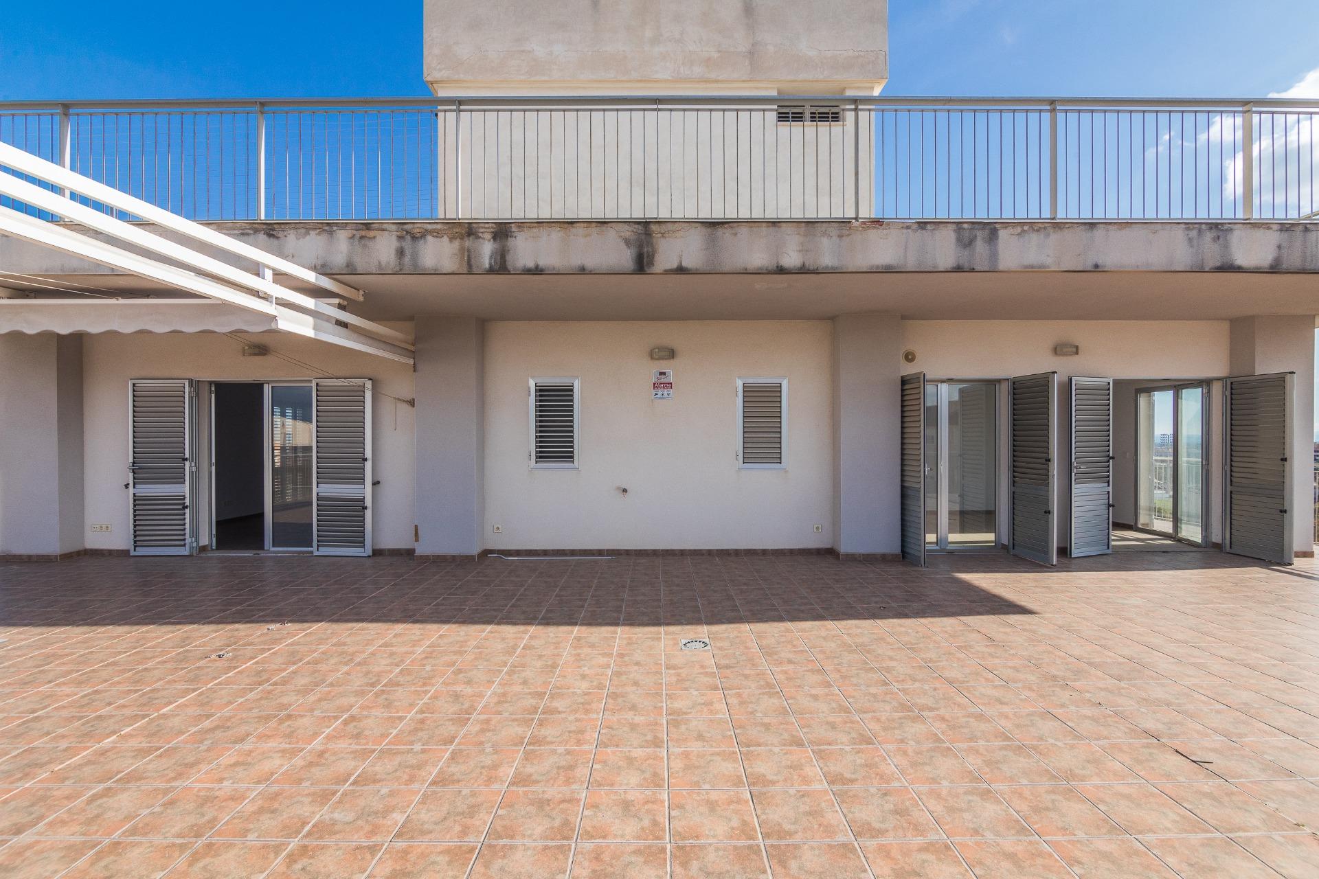 La vivienda cuenta con amplios espacios con 4 dormitorios, el de matrimonio cuenta con VESTIDOR Y BAÑO , un baño que da servicio al resto de la vivienda prestando comodidad y funcionalidad por su gran tamaño , con una eficiente distribucion tenemos una ESPECTACULAR COCINA COMEDOR y galería, IMPONENTE SALÓN muy luminoso y ventilado además de gozar de la virtud de estar comunicado con SU EXCLUSIVA TERRAZA QUE SE FUNDE CON EL PAISAJE HACIA LA CIUDAD DEPORTIVA SIENDO LO MAS IMPRESIONANTE DE ESTA VIVIENDA PORQUE ES VERDADERAMENTE ENORME. Desde allí podrás disfrutar de vistas panorámicas incluso el Mar Mediterráneo . La terraza está diseñada para ser un espacio ideal para relajarse o disfrutar con la familia, con diferentes orientaciones para percibir el sol a cualquier hora del dia. Cuenta con extra de aire acondicionado por conductos y toldo en terraza.