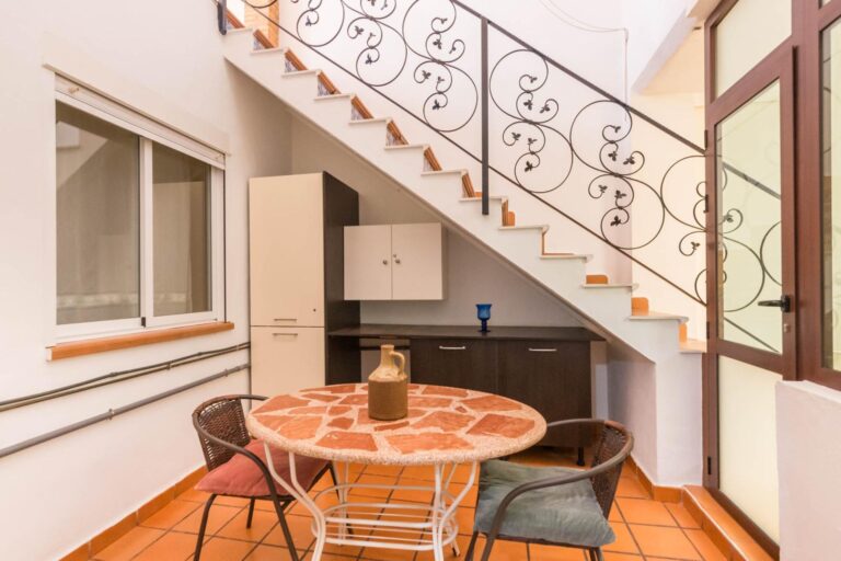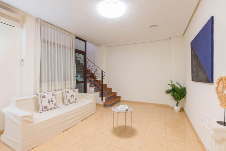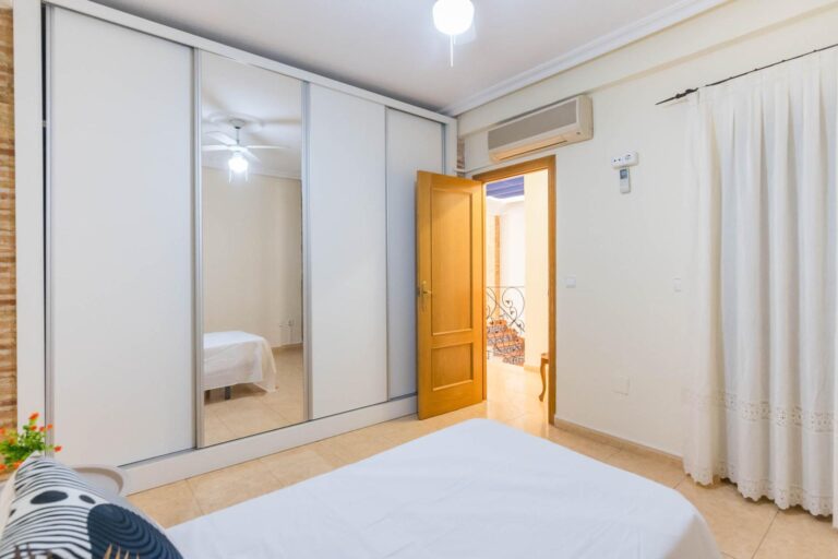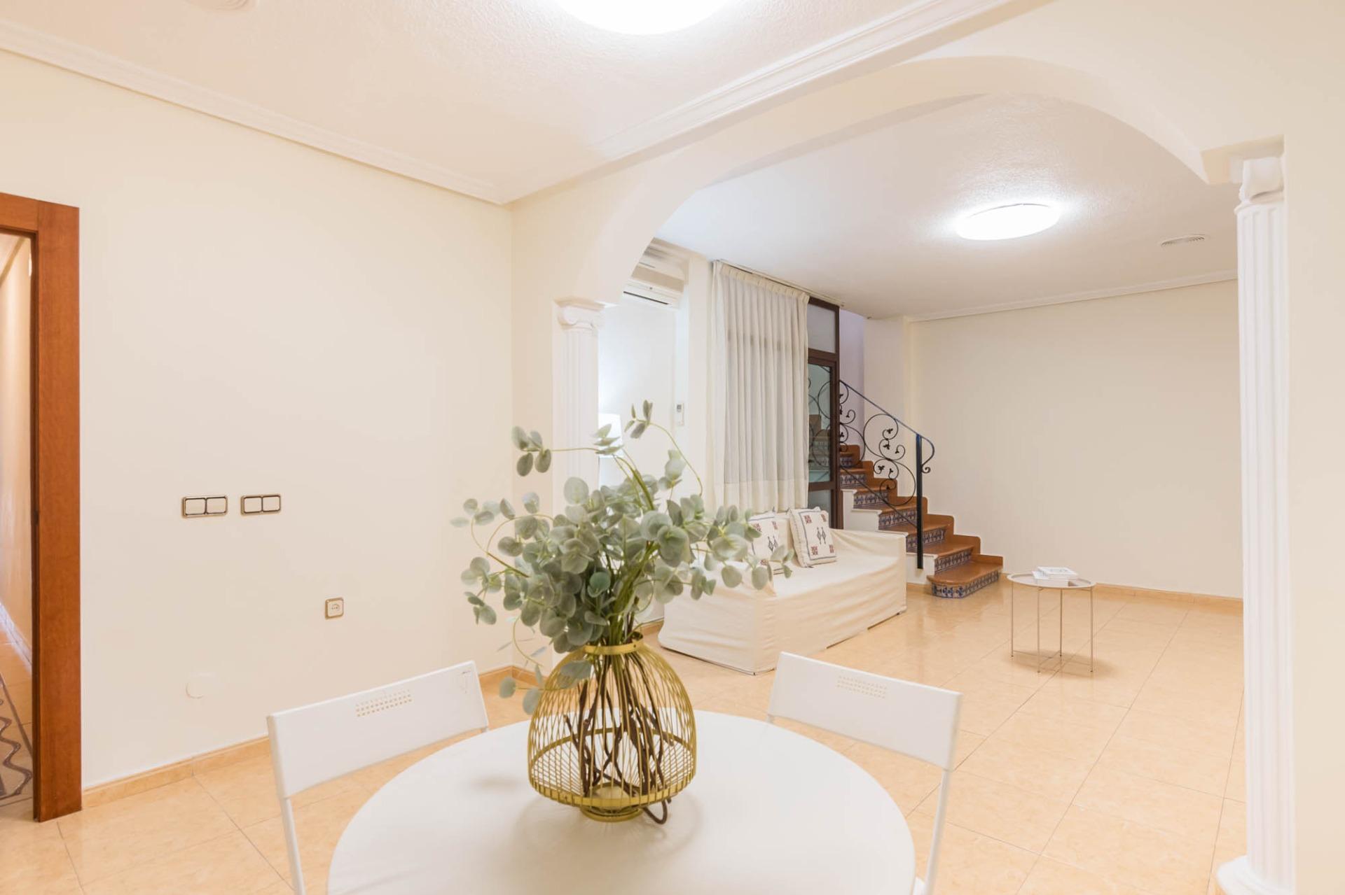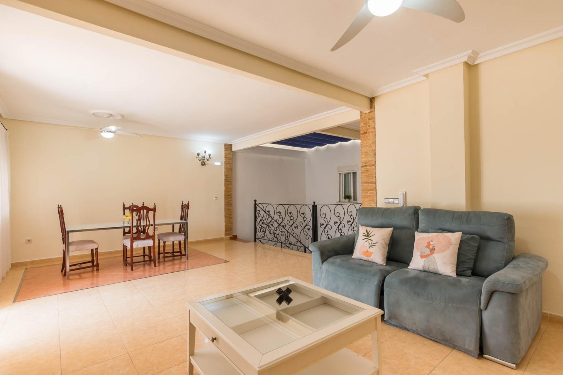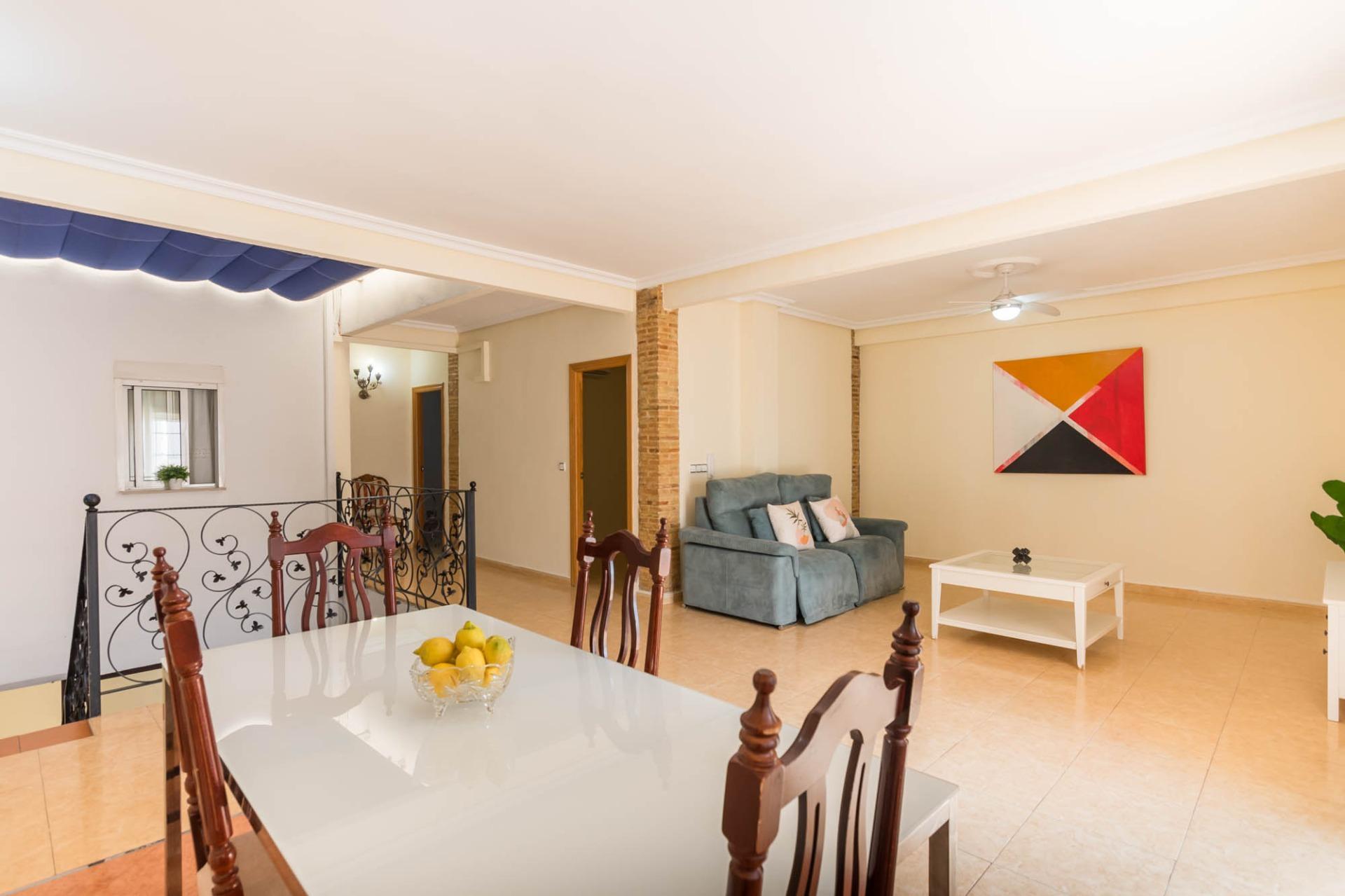 En la primera planta dispone de 3 habitaciones dobles, una individual (actualmente convertida en vestidor), un baño completo, cocina independiente, salón, y un pequeño patio. La segunda planta dispone de 2 habitaciones, cuarto de baño, salón, y una amplia terraza donde disfrutar de momentos mágicos con la familia o amigos con cocina equipada.