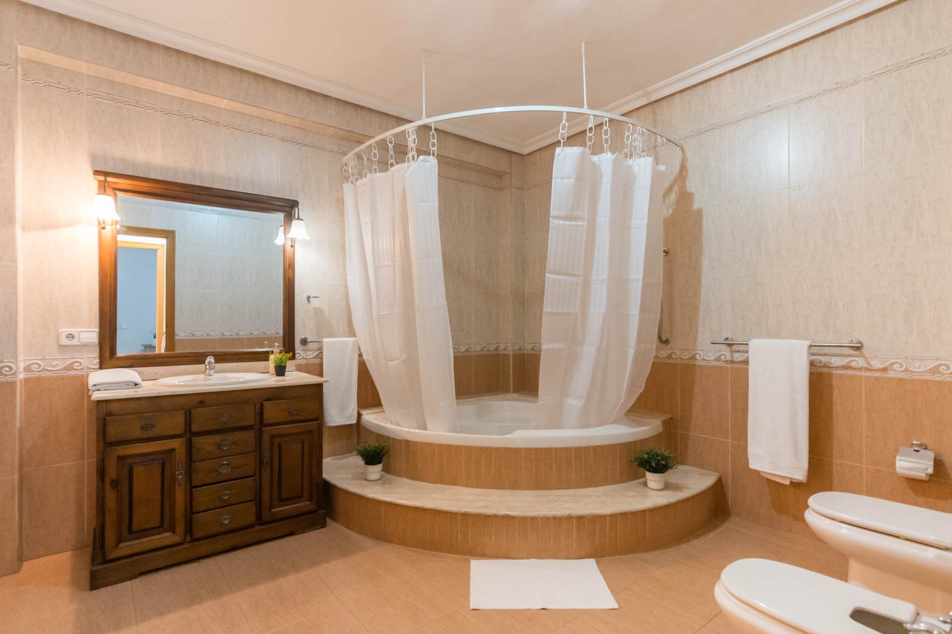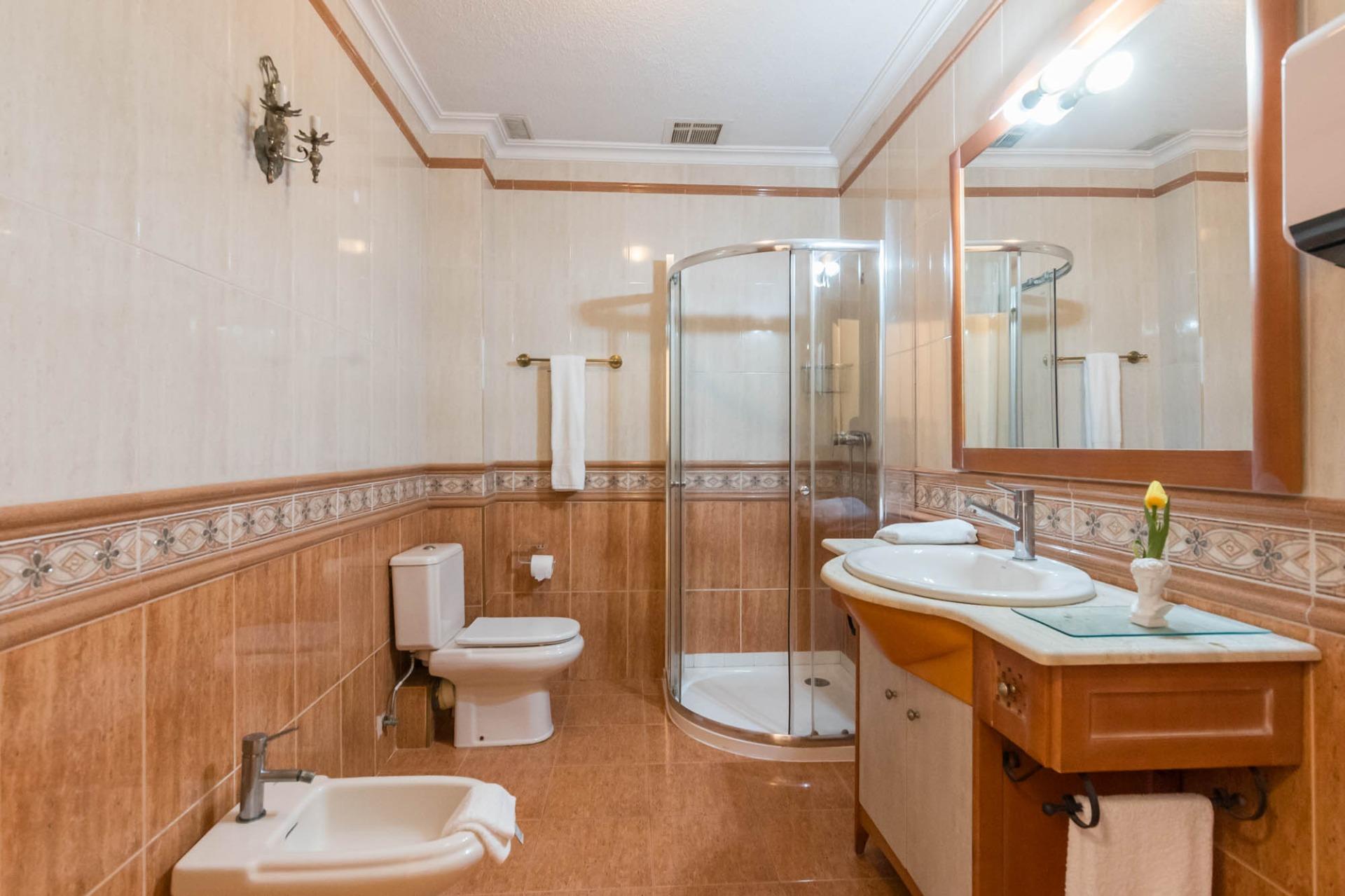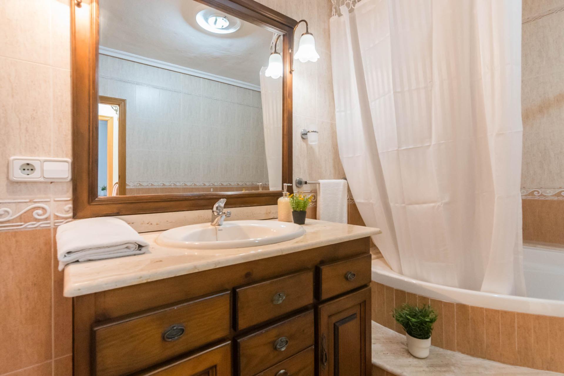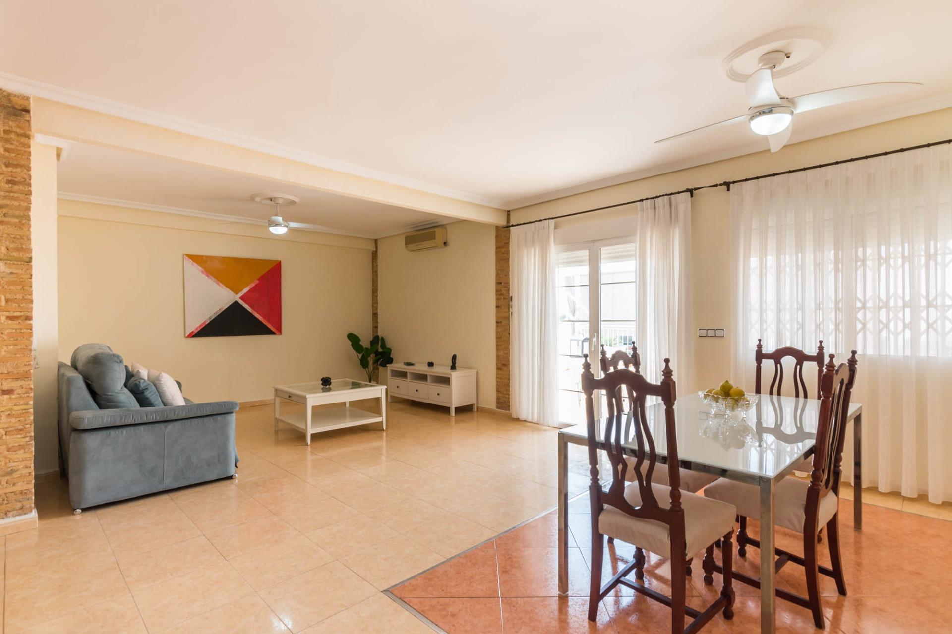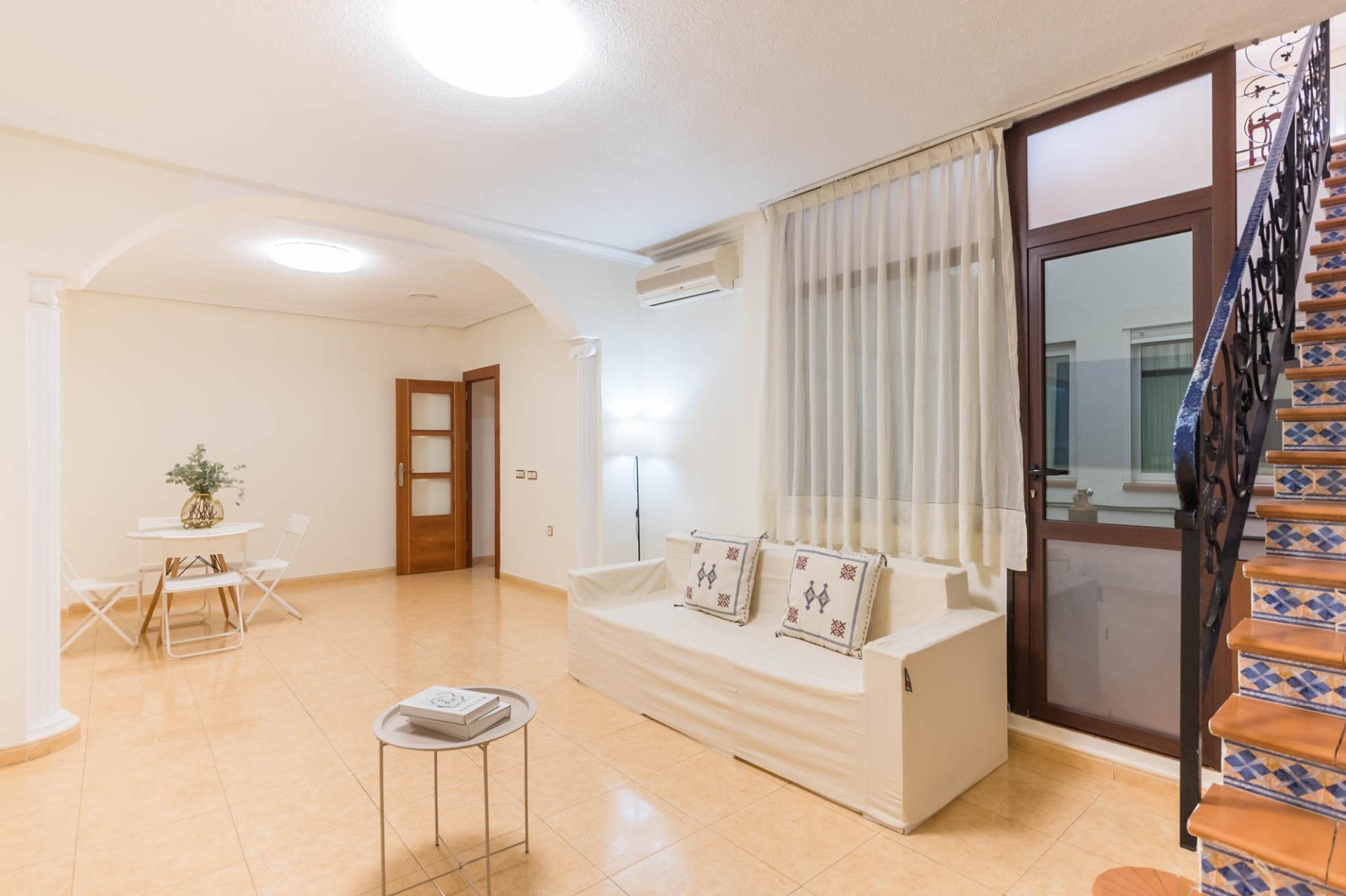 En la primera planta dispone de 3 habitaciones dobles, una individual (actualmente convertida en vestidor), un baño completo, cocina independiente, salón, y un pequeño patio. La segunda planta dispone de 2 habitaciones, cuarto de baño, salón, y una amplia terraza donde disfrutar de momentos mágicos con la familia o amigos con cocina equipada.