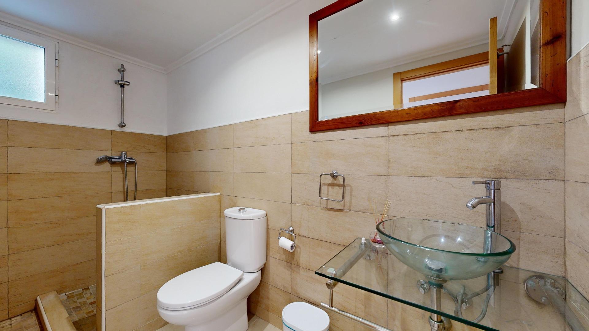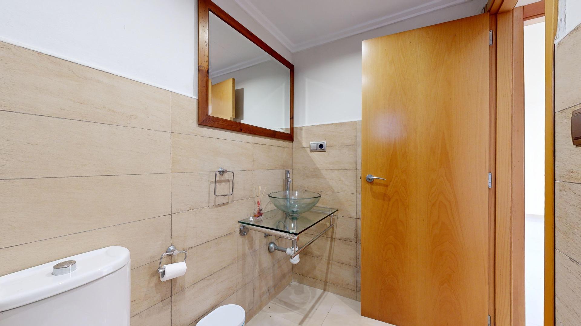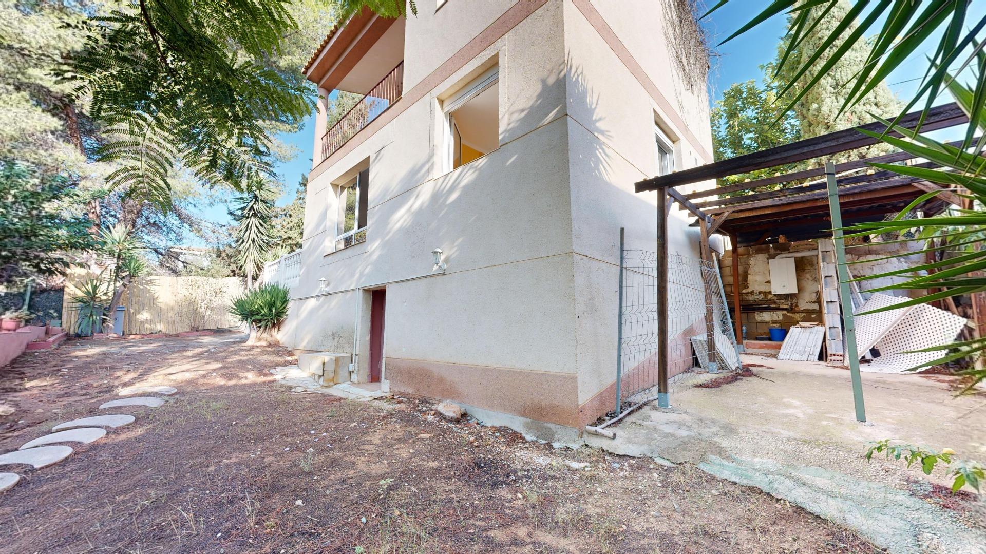 Planta baja: salón comedor, cocina independiente, un baño completo, y un dormitorio. Además, cuenta con una terraza techada o porche para desayunar al alba disfrutando de sus pinadas y bonita parcela.