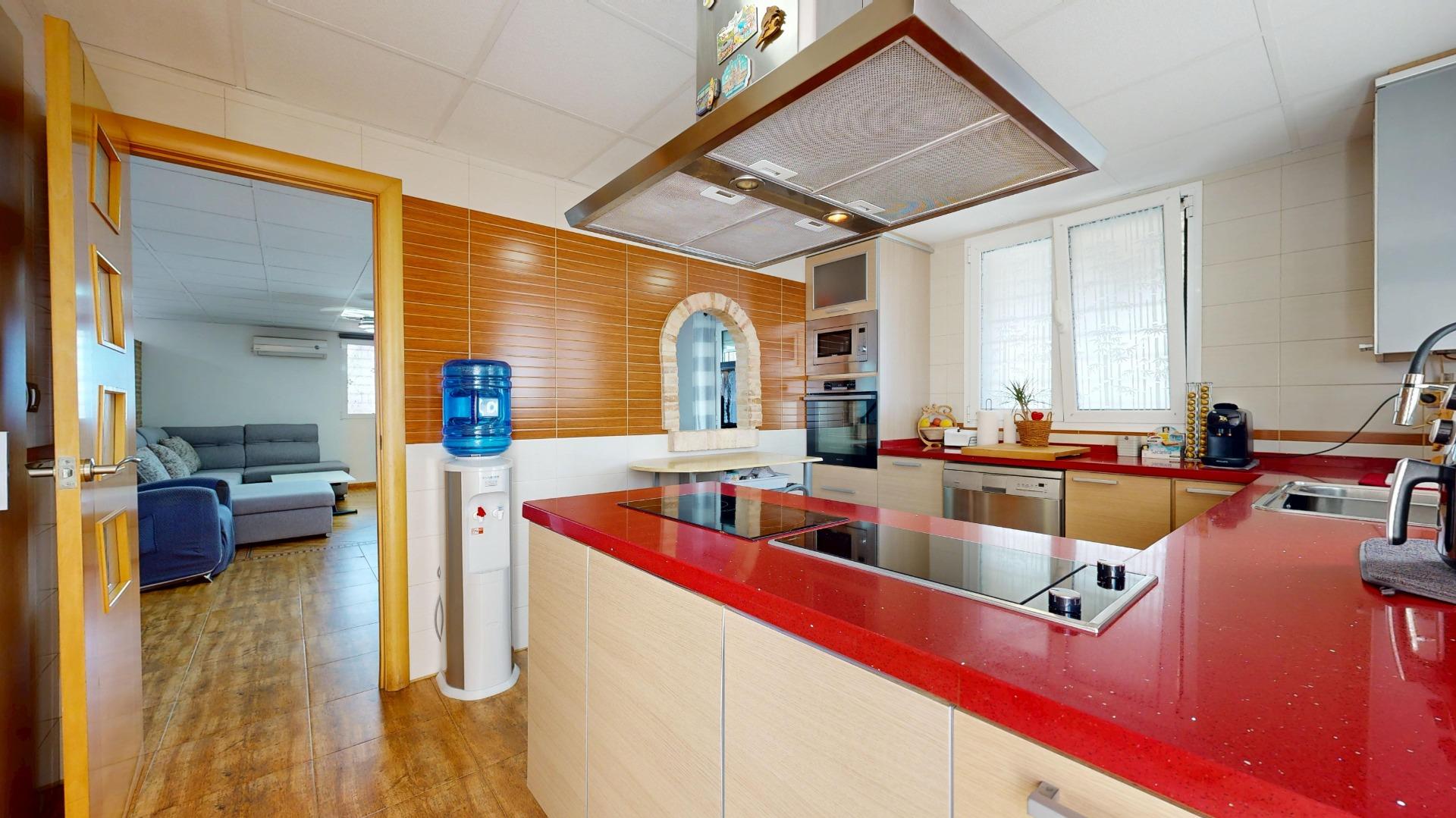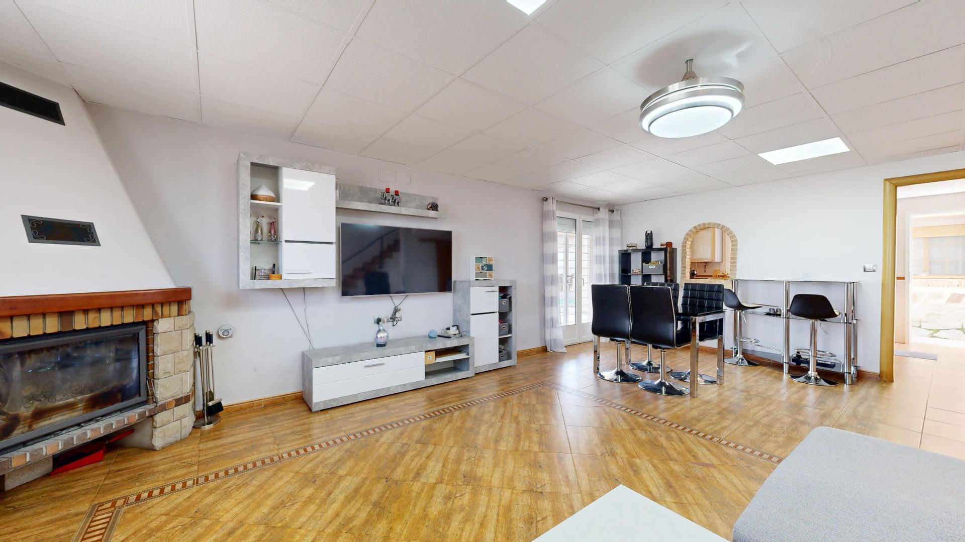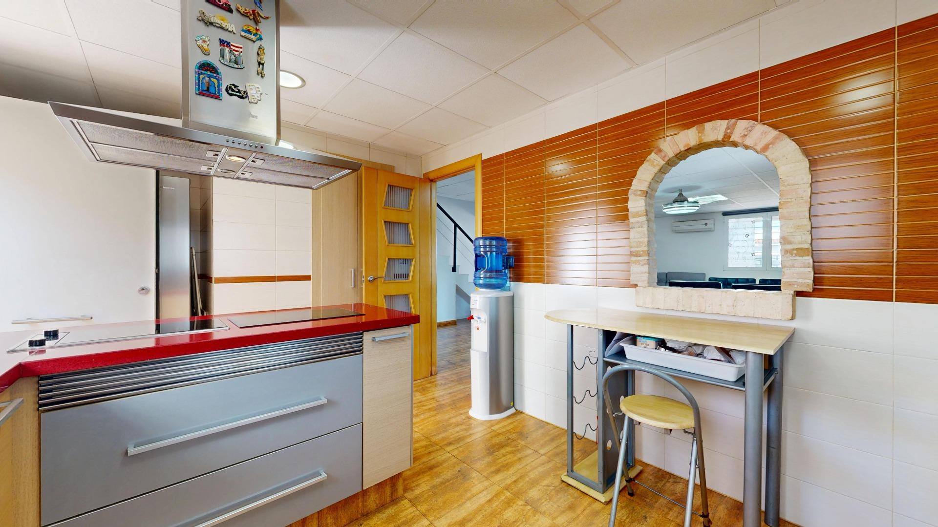 Planta baja: gran comedor con cocina integrada y aseo.