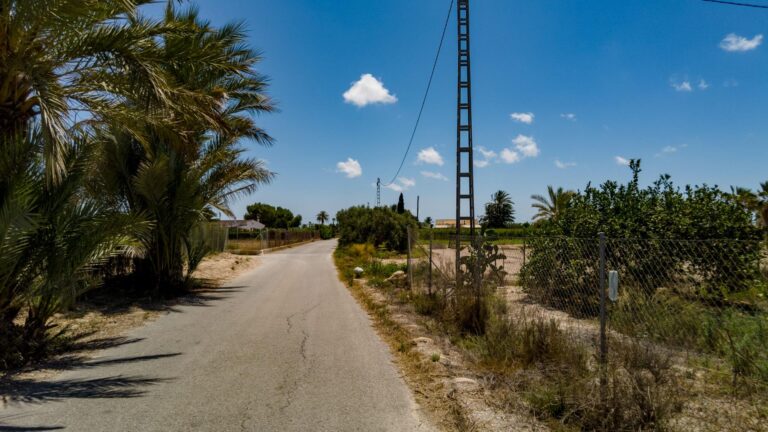 La ubicación es ideal a tan solo 5 kms del Hospital General de Elche, en la Partida Baya Alta y a 9 kms de las playas de Santa Pola. A poca distancia del Aeropuerto, en la Costa Blanca. Tiene acceso asfaltado por dos carreteras, camino Viejo de Santa Pola y camino de las Juntas. Una zona con mucha demanda por su cercanía a Elche ciudad y a tan solo 12 minutos de la playa.