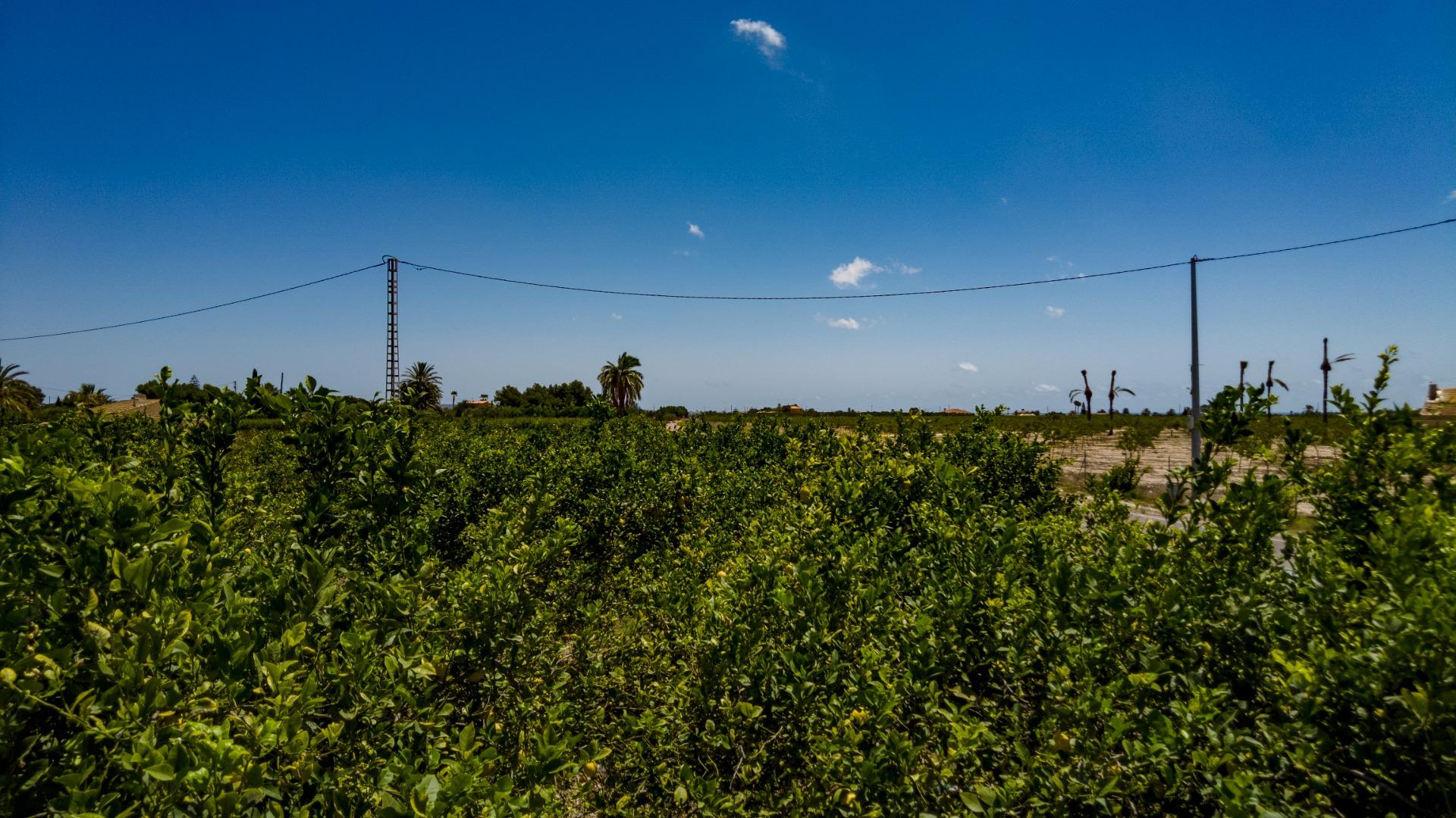 Torre de Luz en la misma parcela. Agua de riego del Progreso y del Trasvase por acequía. Informe favorable de Aigües d'Elx para la acometida y contador de agua potable con un coste entre 1.200 € y 1.500 € aproximadamente.