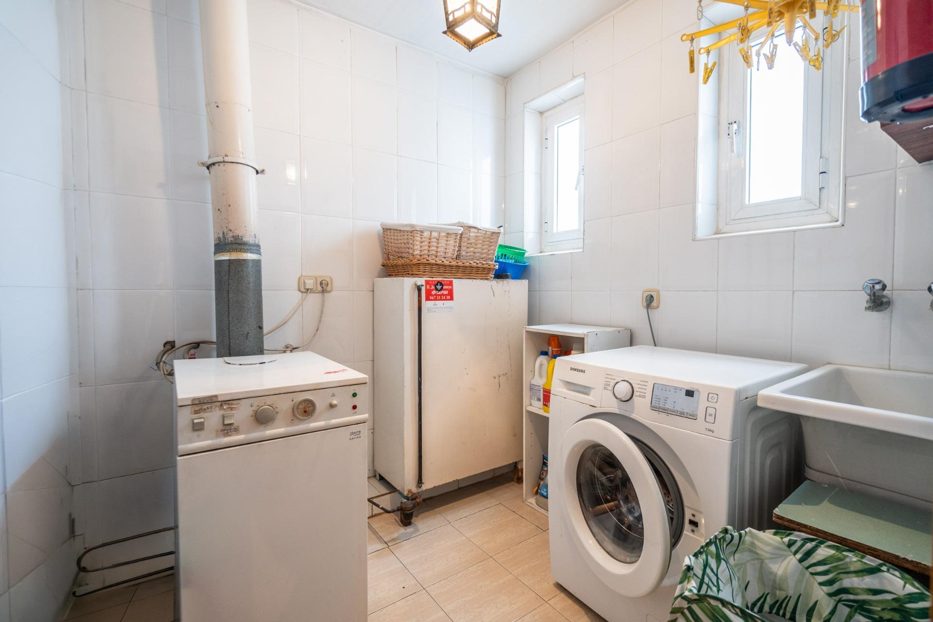 La distribución se compone de cinco dormitorios, uno de ellos con terraza, dos baños completos, un espacioso salón, comedor independiente, cocina y un cuarto destinado a lavandería y calefacción. La vivienda dispone de chimenea, armarios empotrados, puerta blindada y aire acondicionado, características que aportan confort y funcionalidad. Se trata de un piso reformado y preparado para entrar a vivir.