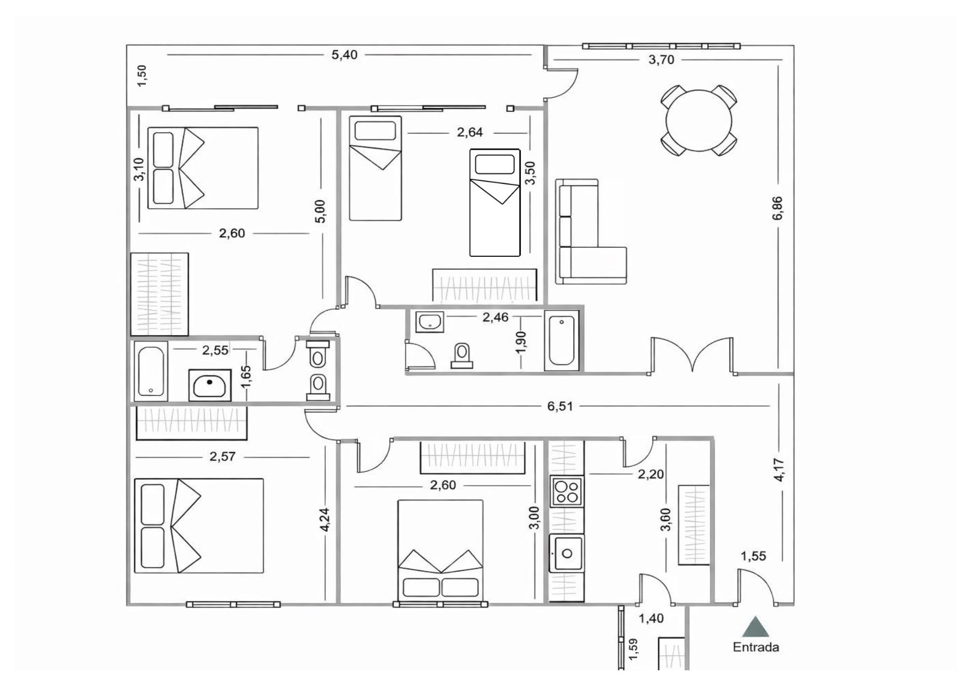La propiedad dispone de cuatro dormitorios completamente exteriores, lo que garantiza luminosidad en todas las estancias durante todo el día. Todas las habitaciones son dobles y tienen armarios empotrados. Dos de ellas tienen orientación nordeste y las otras dos orientación sur con salida directa a la terraza, por lo que toda la vivienda tiene ventilación cruzada dando como resultado una temperatura ideal tanto en verano como en invierno. Además de dos cuartos de baños completos.