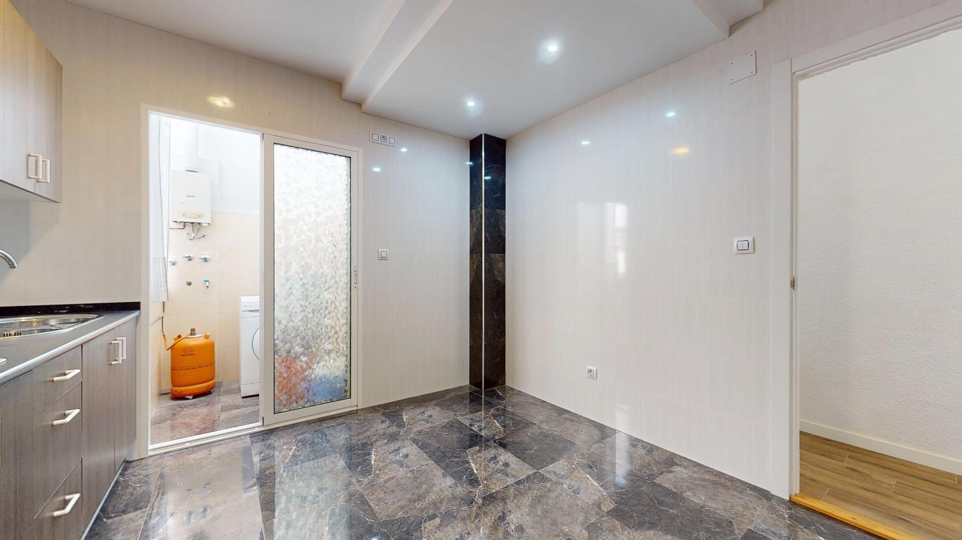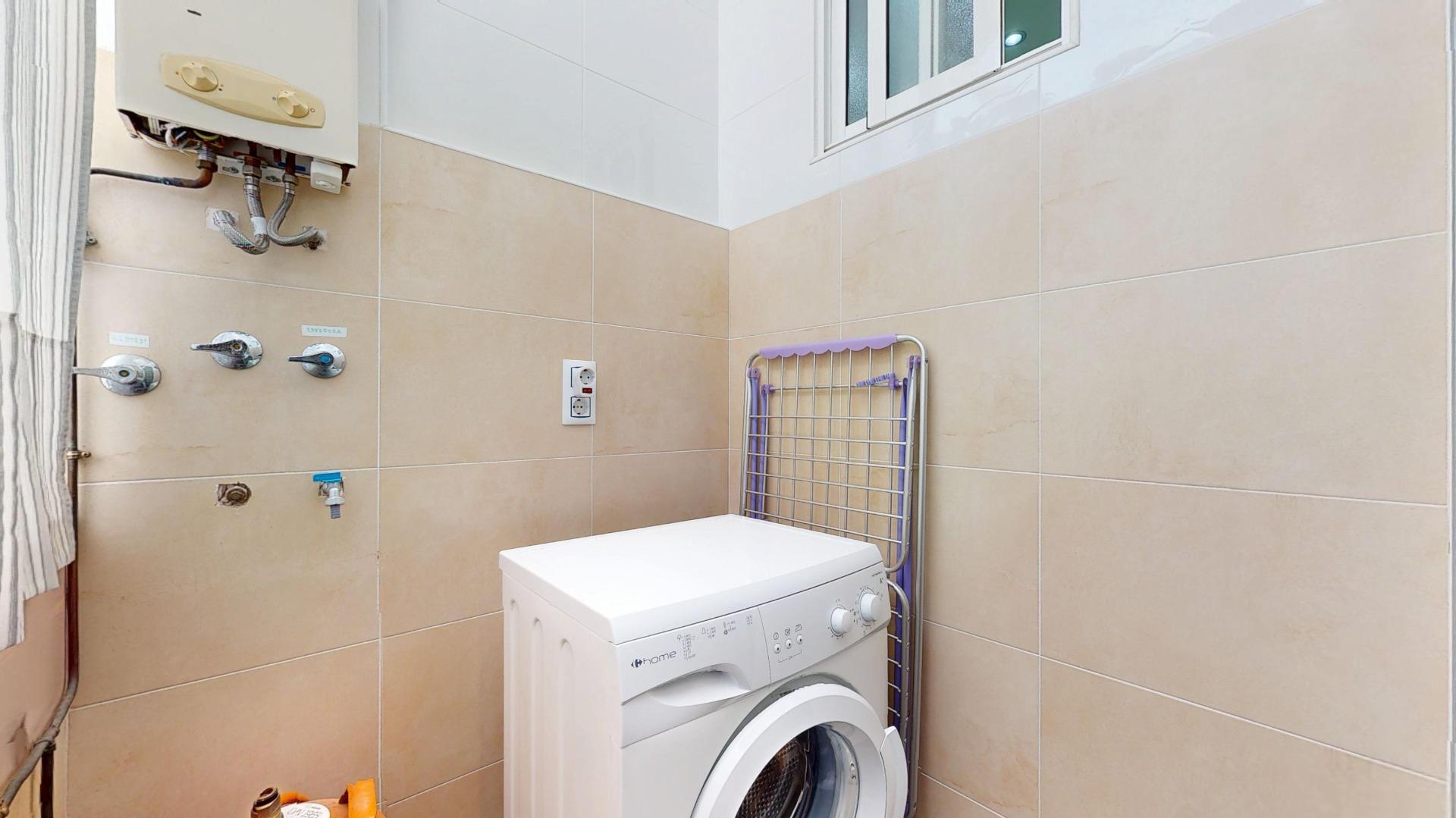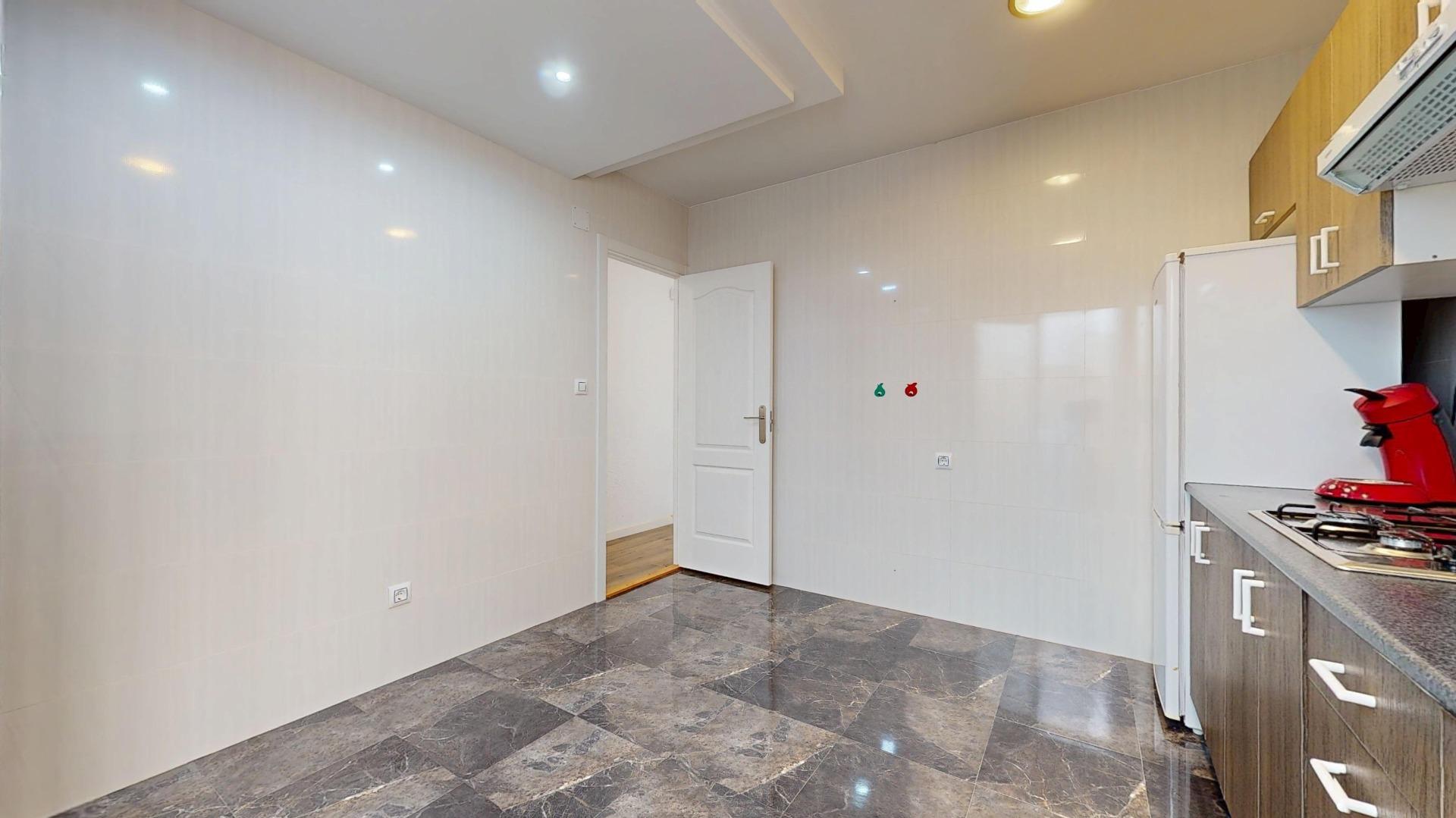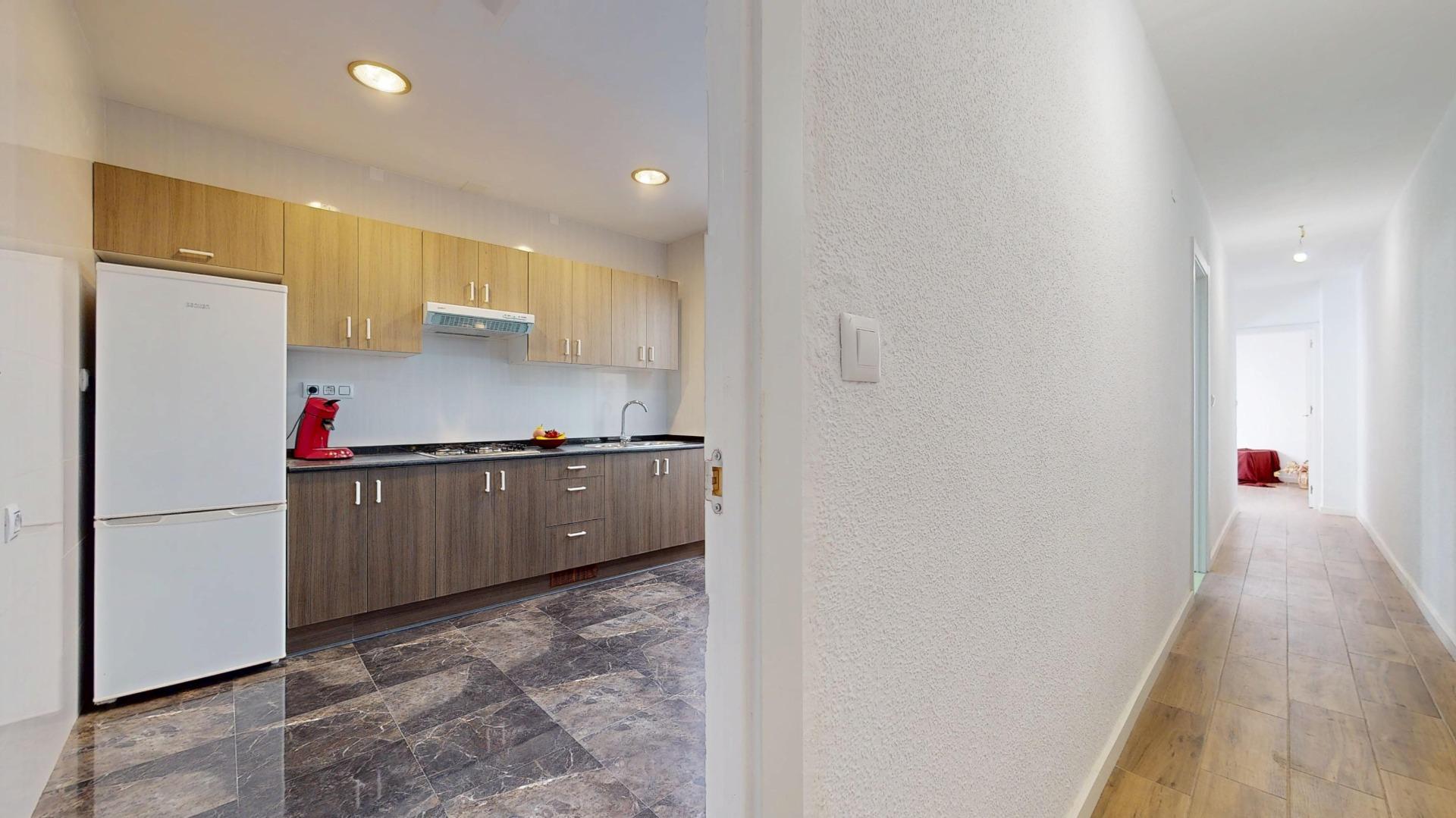 Dispone de 3 habitaciones dobles con armarios empotrados, un cuarto de baño con pie de ducha totalmente reformado, y una amplia cocina con galería, que incluye la nevera y la lavadora.