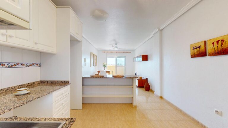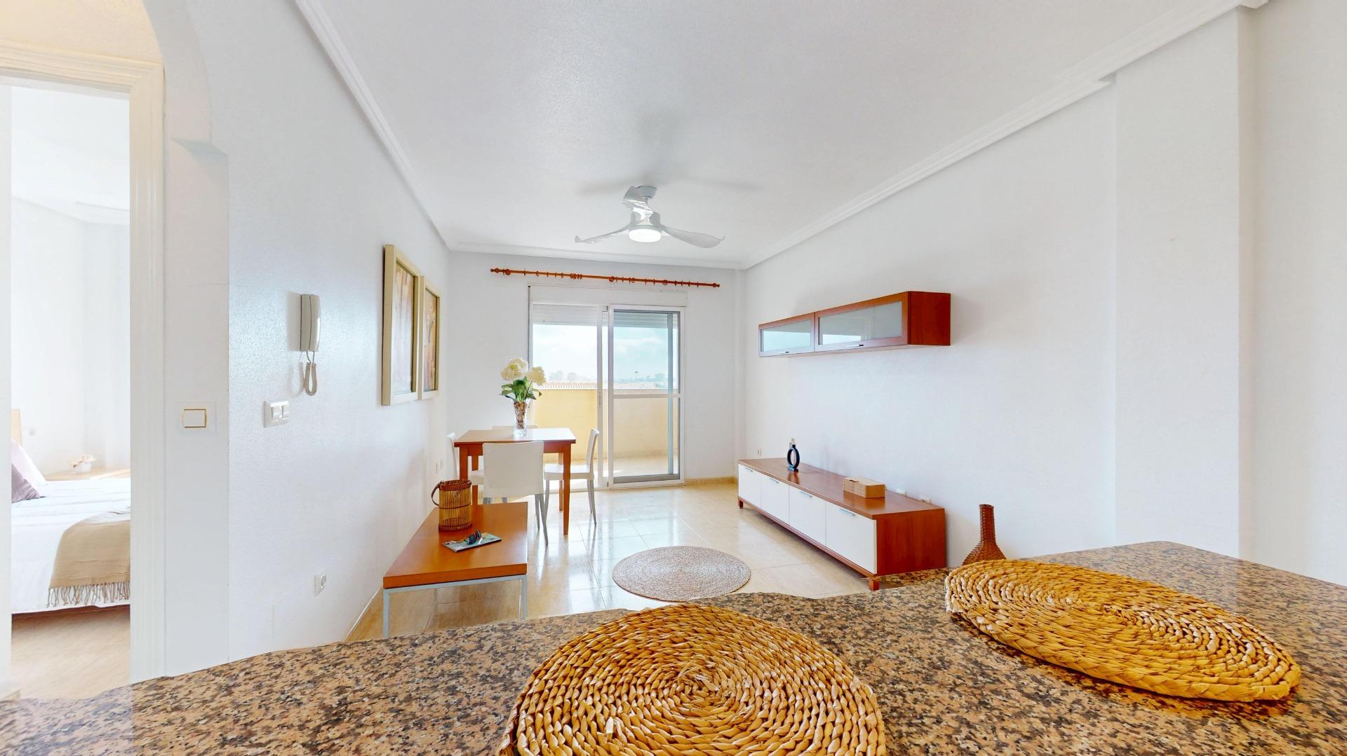 Nada más entrar a la vivienda, disponemos de una cocina integrada en el salón comedor, lo que hace de esta estancia una zona más dinámica y funcional. Tanto el salón como la habitación principal comunican directamente con la salida al balcón, desde dónde podrás apreciar sus magníficas vistas al mar. Amanecer con un desayuno en esta terraza, será la mejor manera de comenzar el día, y salir a tomar el fresco con un buen libro antes de acostarte, la mejor forma de terminarlo.