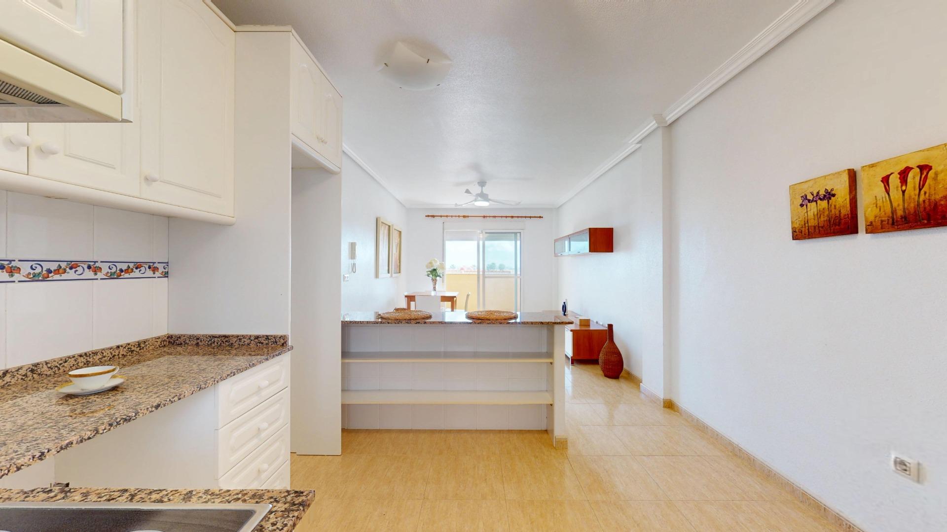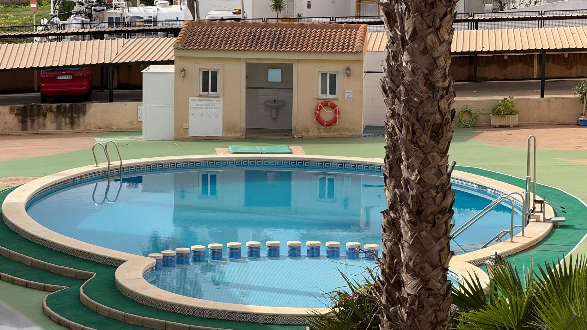 Este apartamento se sitúa en el Residencial del Palmeral, una urbanización privada con piscina comunitaria y espacios ajardinados.