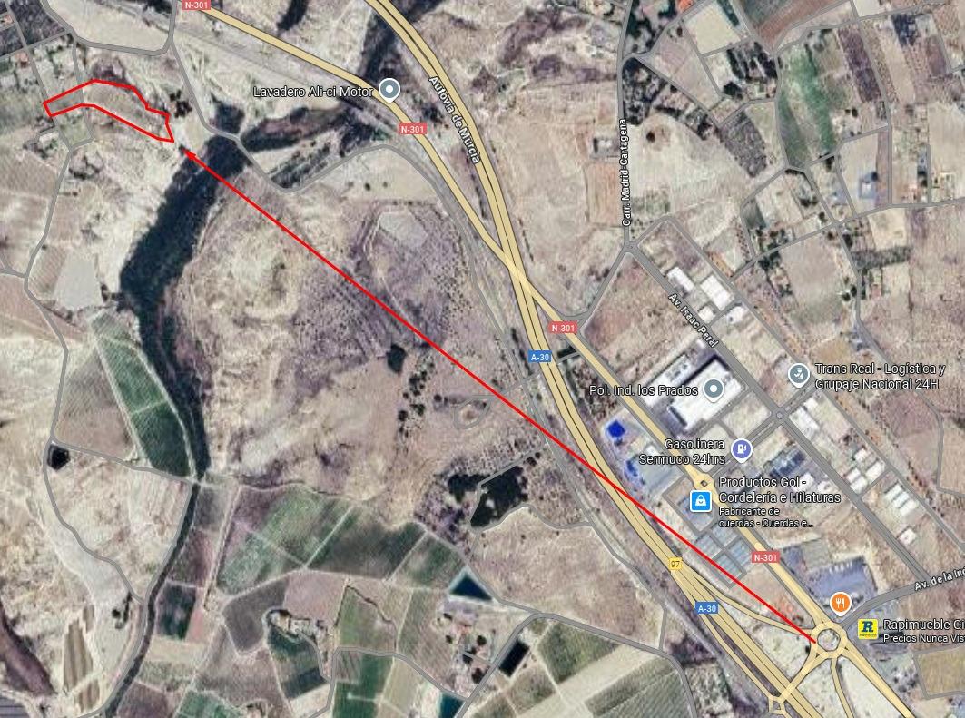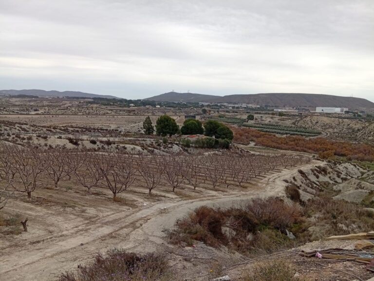 En zona agrícola consolidada de Cieza, rodeada de explotaciones frutales.