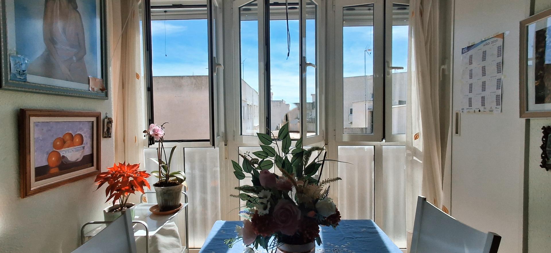 Nos encontramos en la 2ª planta del edificio. El piso muy luminoso se distribuye en salón comedor con terraza acristalada, 3 dormitorios, 2 baños, amplia cocina y lavadero a a galería. Dispone de splits de aire acondicionado y bomba de calor, y ventiladores de techo en todas las dependencias.