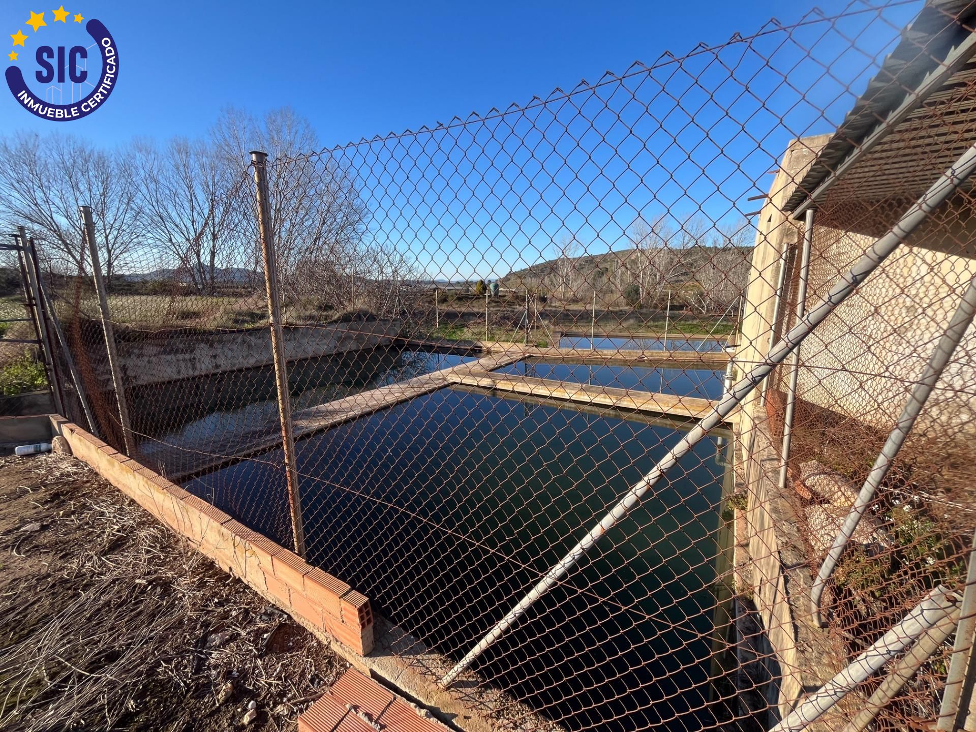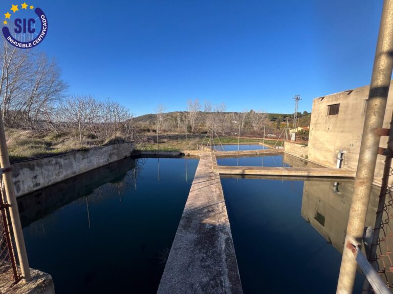 Balsa para almacenamiento de agua de riego, funcional y preparada para su uso.