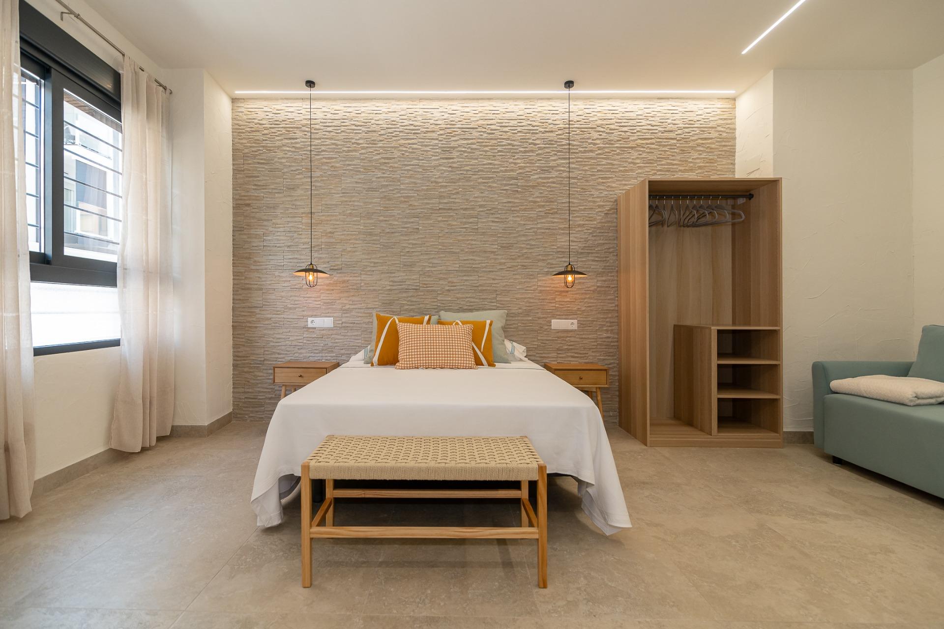 Pensión de 2 habitaciones tipo loft (37 m2 y 31 m2), con capacidad para 4 personas en cada habitación (2 + 2 en sofá cama) a 50 metros de la Playa de Levante y 300 metros de La Glorieta. En funcionamiento. Inaugurada verano de 2.025. Materiales de primera calidad, Aire Acondicionado, TV, iluminación LED, wifi, amplísimos cuartos de baño.