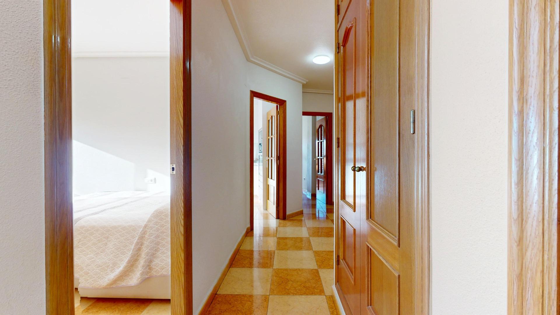 Al entrar, encontramos un **pasillo distribuidor** que organiza la vivienda de forma muy práctica, conectando todas las estancias y aportando almacenaje extra gracias a un **armario empotrado** perfecto para abrigos, zapatos o menaje.
