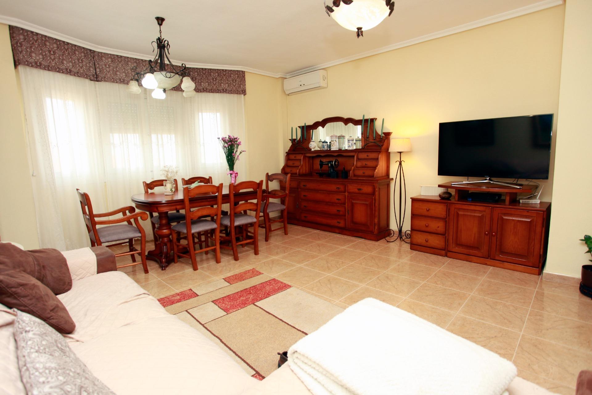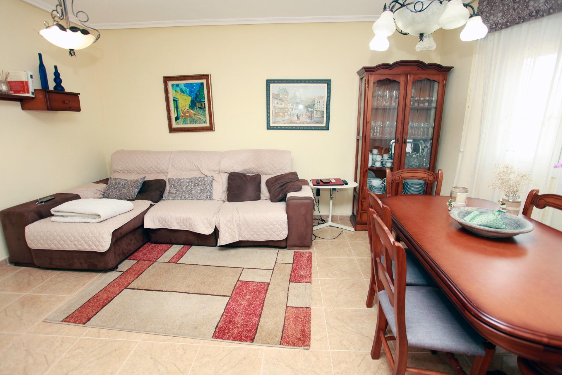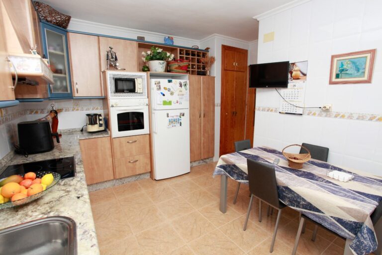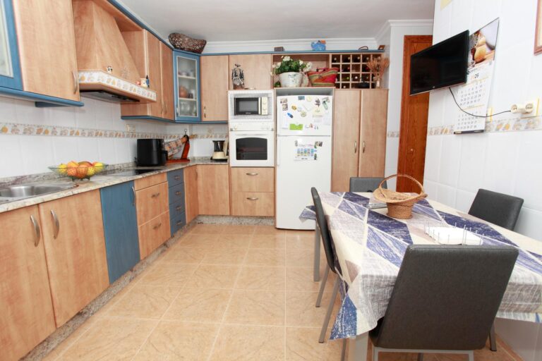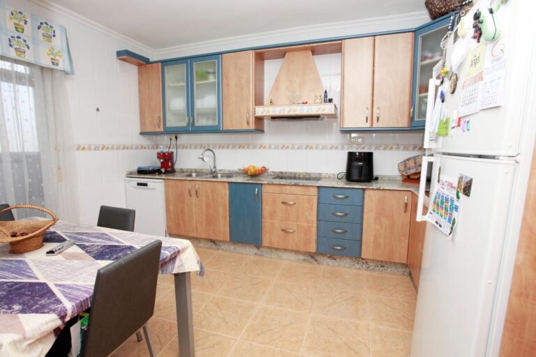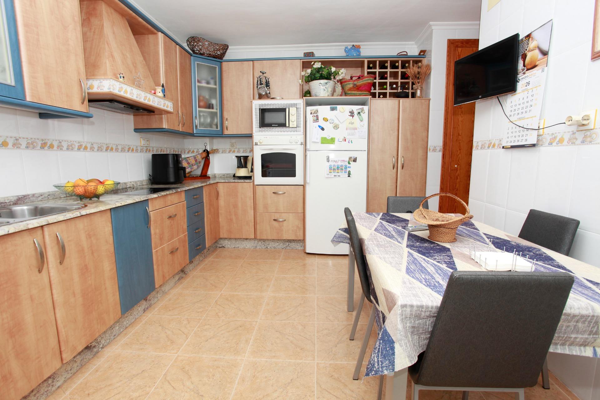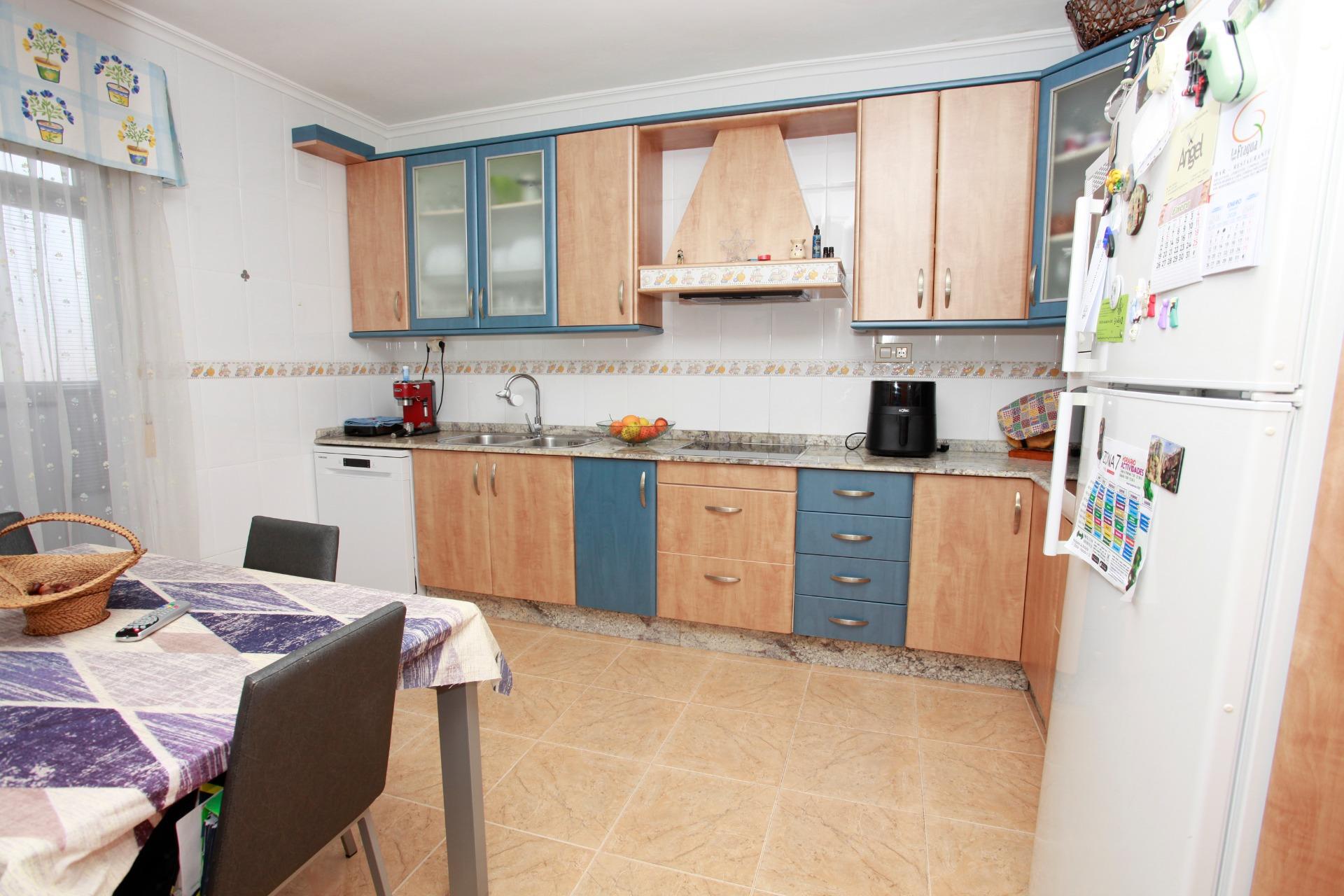 El salón-comedor, amplio y muy luminoso, es perfecto para el día a día familiar y para recibir invitados con total comodidad. La cocina, completamente amueblada y equipada con electrodomésticos, ofrece un espacio funcional y acogedor para compartir comidas, con salida directa a una galería independiente y cuarto de plancha, aportando orden y practicidad.