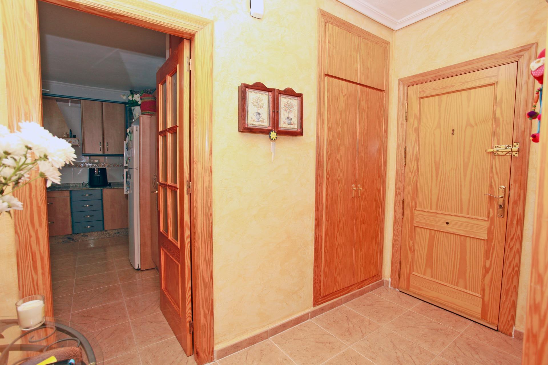 Desde el hall de entrada, un armario empotrado facilita la organización de abrigos, calzado y ropa diaria, manteniendo la vivienda siempre ordenada.