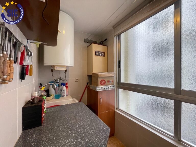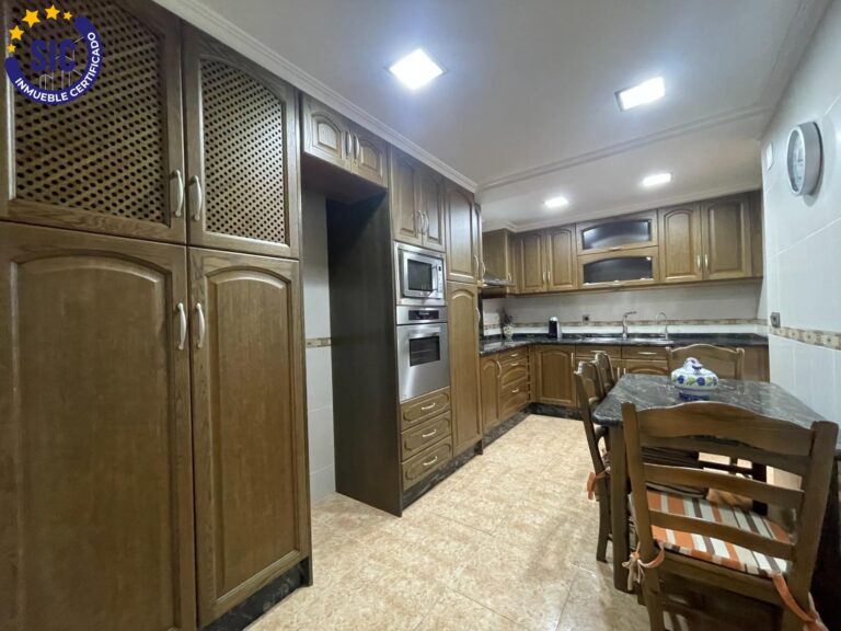 A la izquierda, encontramos una espaciosa cocina con muebles de madera de primera calidad, cálida y funcional, acompañada de un lavadero independiente con caldera que alimenta la calefacción por radiadores, garantizando confort durante todo el año. A la derecha, el salón-comedor se abre con grandes ventanales a la fachada principal y salida al balcón, un rincón perfecto para relajarte, leer o compartir momentos especiales.
