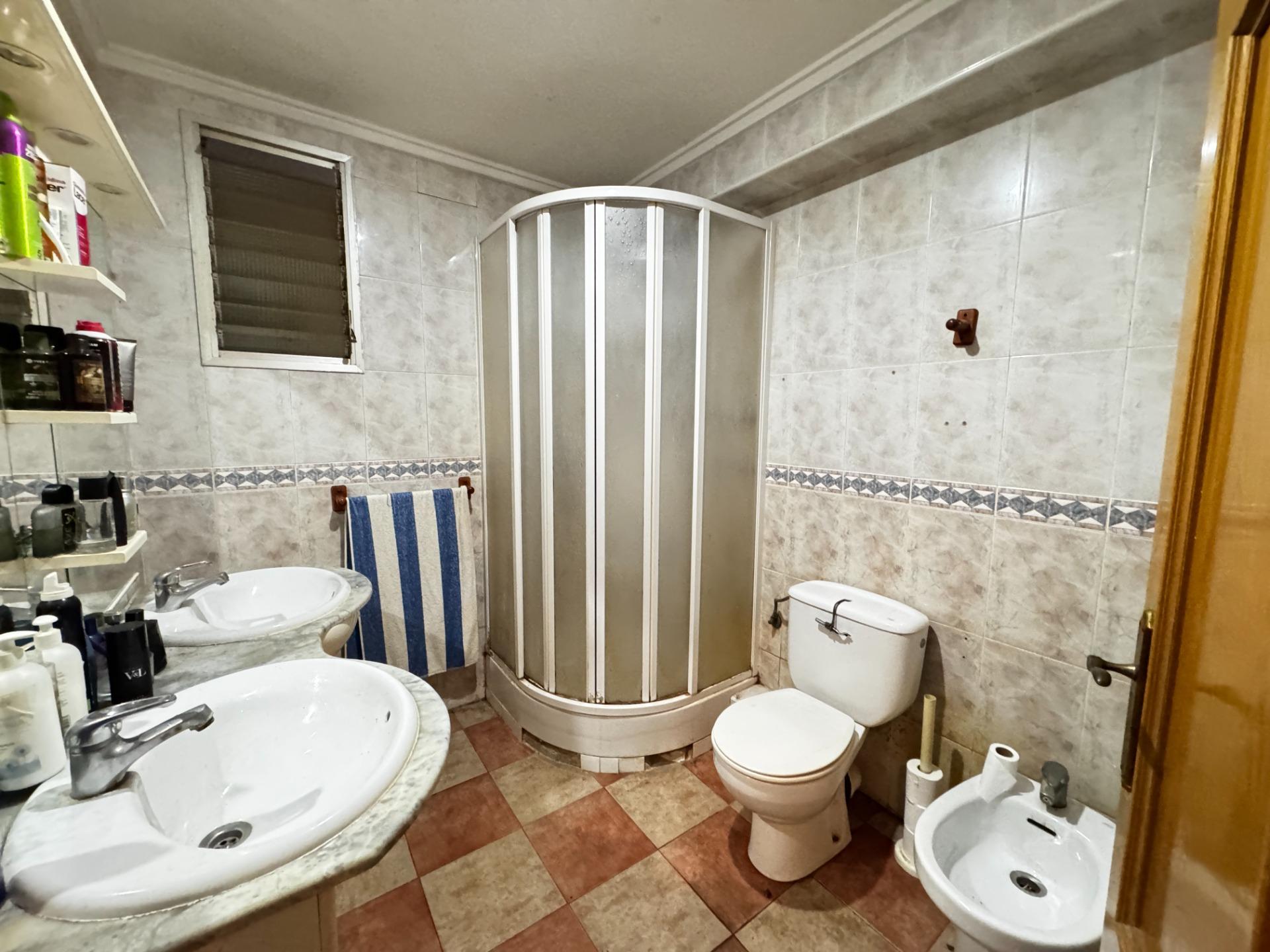 En la entrada del edificio disfrutamos de una reforma nueva con acceso de silla de ruedas y ascensor. Ya en la tercera planta, el recibidor invita a pasar por un pequeño pasillo que tiene acceso a un salón comedor con dos grandes ventanales de vidrio reflectivo, que no permiten ver el interior desde fuera para mayor privacidad, y otro lateral donde se disfruta del sol por las tardes. Adjuntas se encuentran dos habitaciones dobles exteriores con ventana y al lado contrario una habitación con una ventana opaca que da al trastero y cocina. Al girar encontramos la ducha y el aseo completo y para terminar una gran cocina (antes dormitorio y cocina) de unos 16 m2. Finalmente tenemos un tendedero exterior y un trastero amueblado donde se encuentra la caldera eléctrica con un depósito de 80 litros para tener agua caliente para toda la familia.