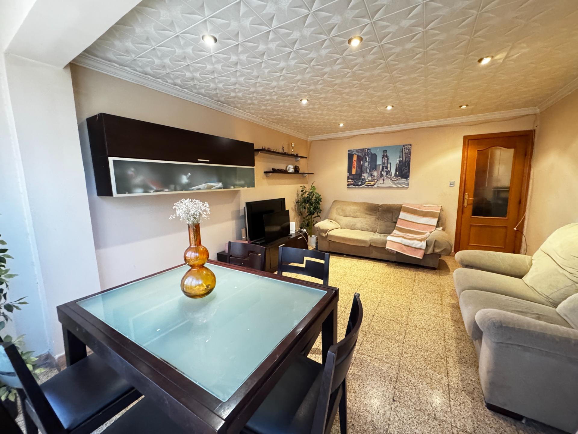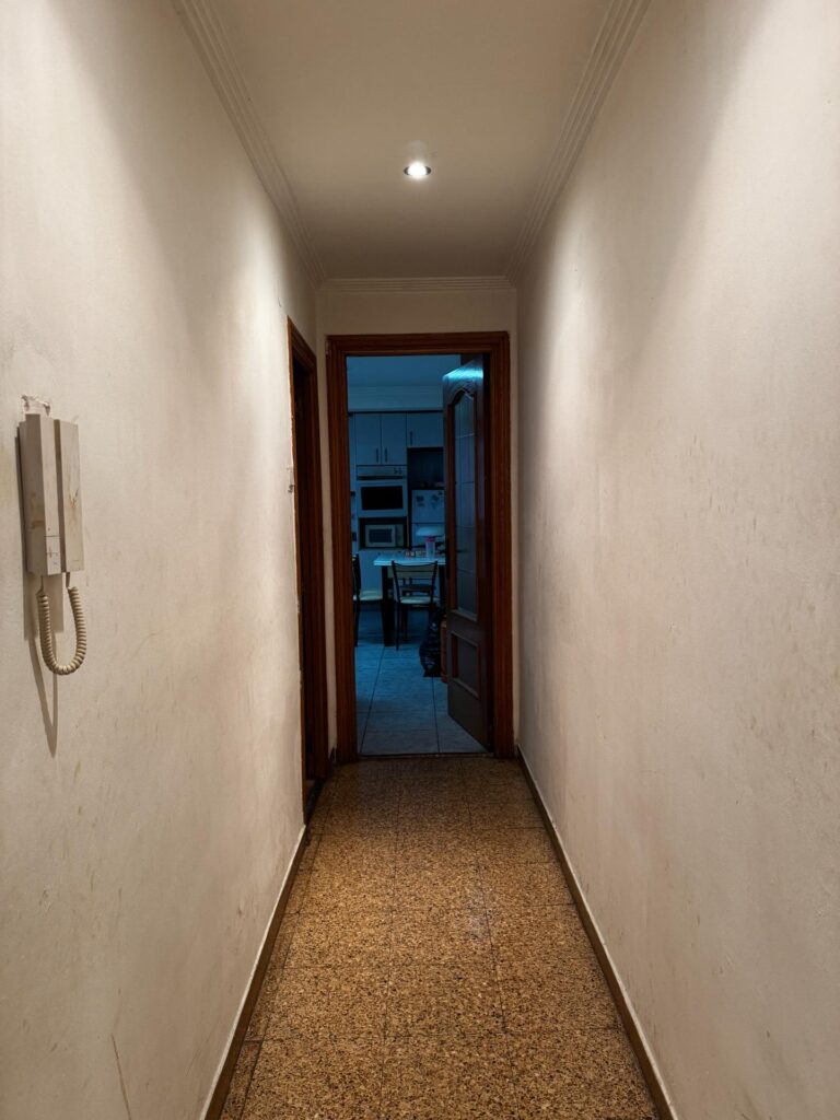 El suelo es de terrazo en toda la casa menos en una habitación exterior que tiene suelo laminado. La carpintería de las ventanas es de aluminio. El piso se encuentra para actualizar, lo que te permitiría diseñarlo a tu gusto eligiendo materiales y tu propio estilo. El piso no dispone de garaje pero actualmente se encuentran disponibles varias plazas a escasos metros en la misma calle.