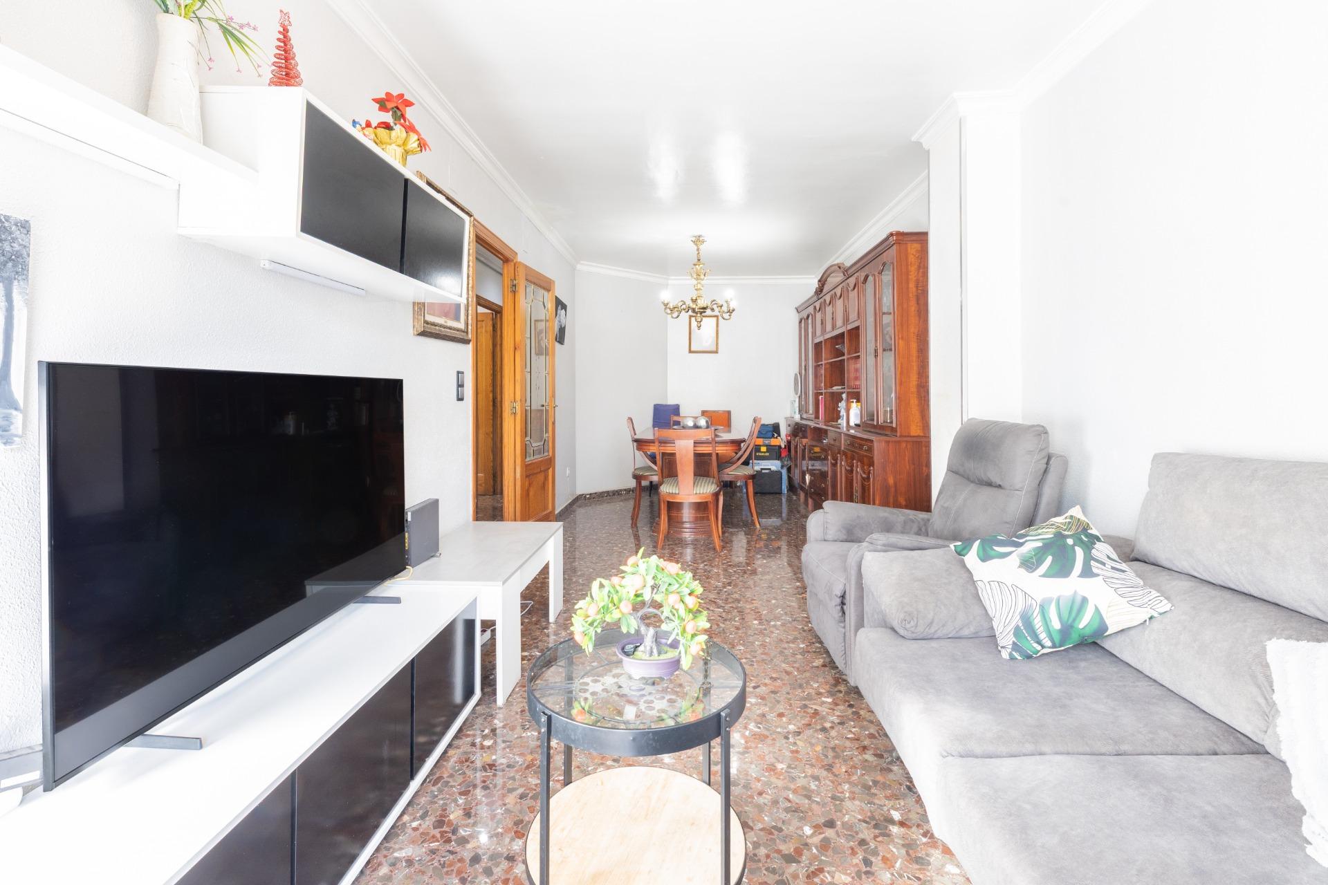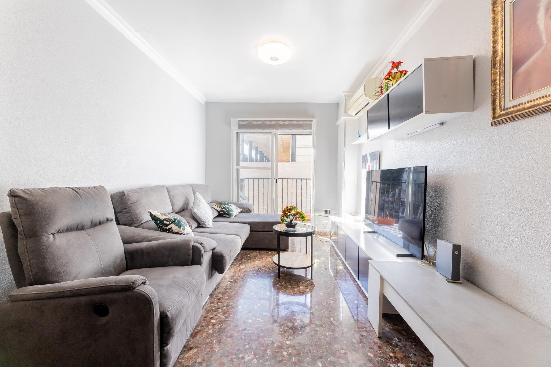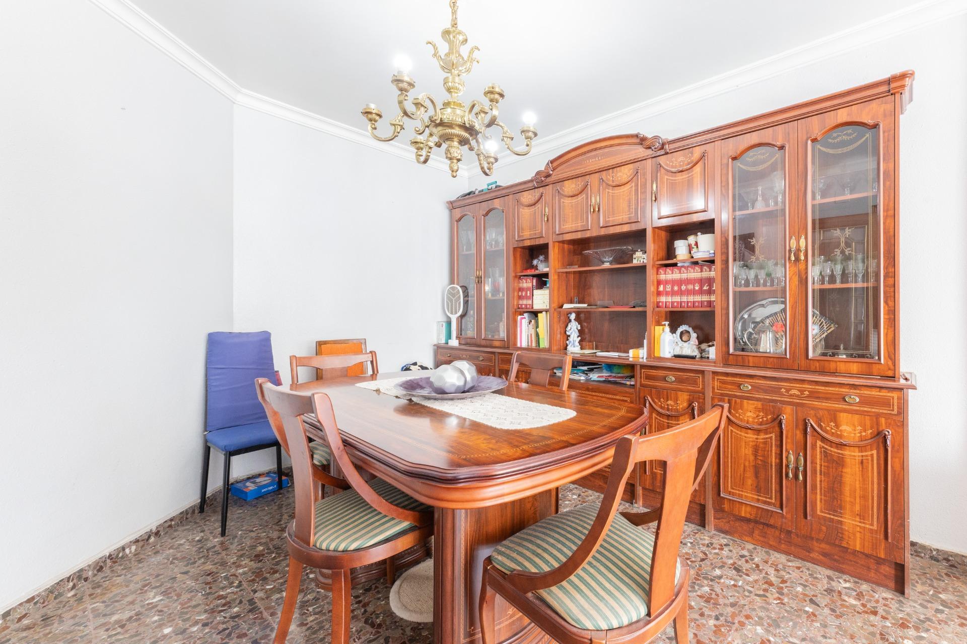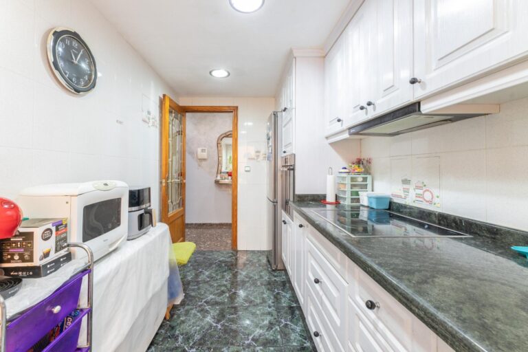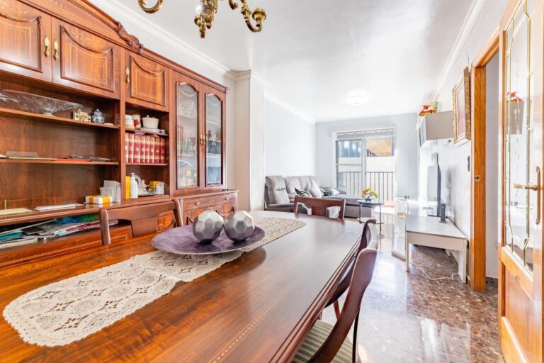 La propiedad cuenta con una cocina independiente, reformada hace aproximadamente 10 años, con salida directa a una galería orientada al sur, ideal como espacio auxiliar de lavado o almacenaje. El salón-comedor, amplio y acogedor, dispone de balcón también orientado al sur, lo que garantiza una magnífica entrada de luz natural durante gran parte del día. En esta estancia encontramos además aire acondicionado, aportando confort en los meses más cálidos.