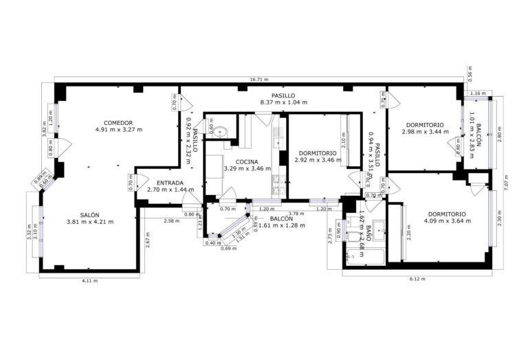 Con 122 m² construidos, la vivienda se organiza en torno a un gran salón comedor que se convierte en el auténtico protagonista. Sus amplios ventanales permiten una entrada generosa de luz natural y conectan con una de las tres terrazas, desde la que se disfrutan vistas despejadas a la plaza y al entorno urbano.