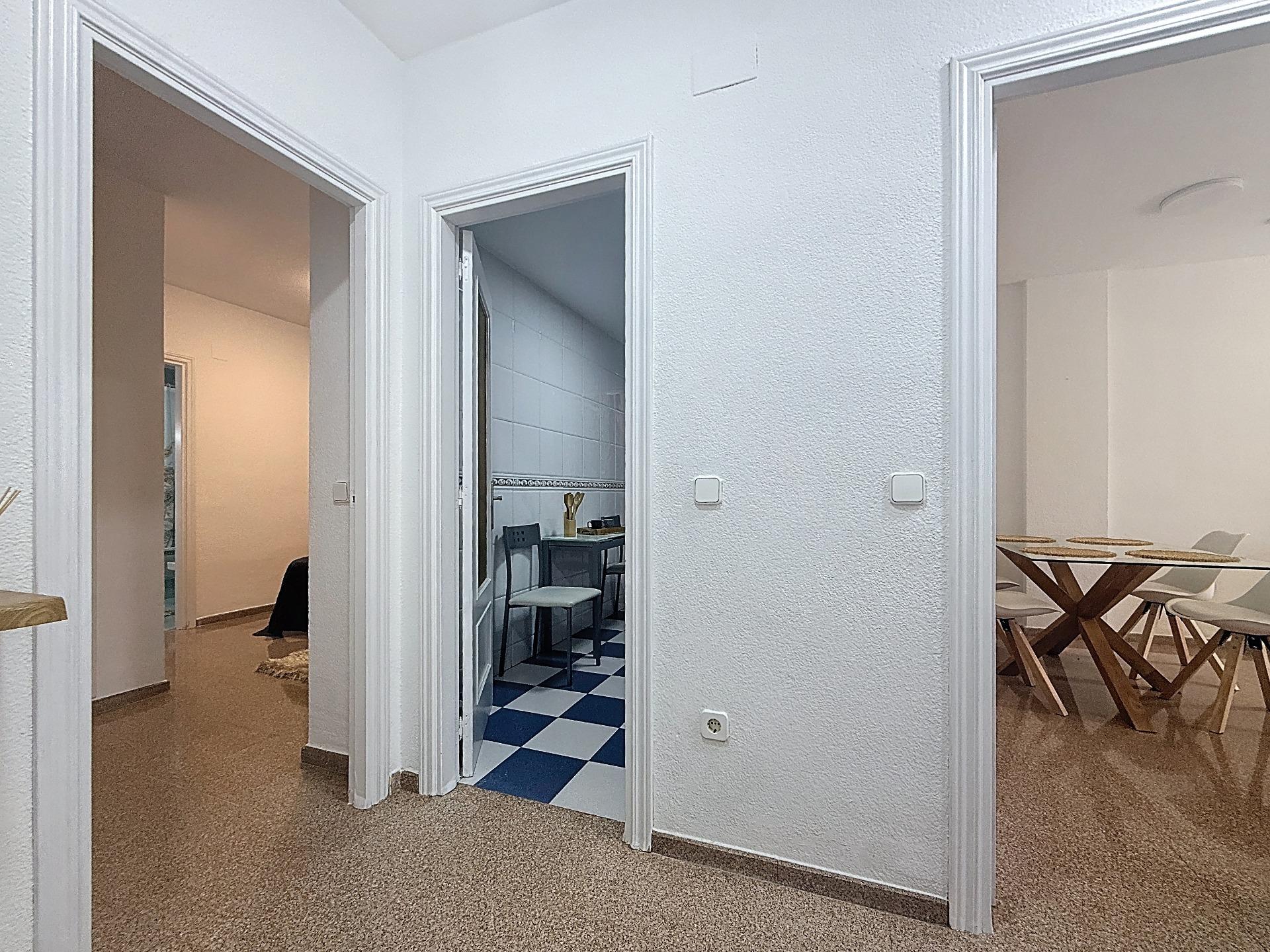 Nada más entrar se percibe una vivienda bien conservada, cuidada y funcional. El salón-comedor ofrece un espacio generoso para crear zona de estar y comedor, con buena entrada de luz natural. La cocina es independiente, está equipada con electrodomésticos y tiene salida a un patio de aproximadamente 6 m², un desahogo muy útil como zona de ventilación, almacenaje o apoyo diario.