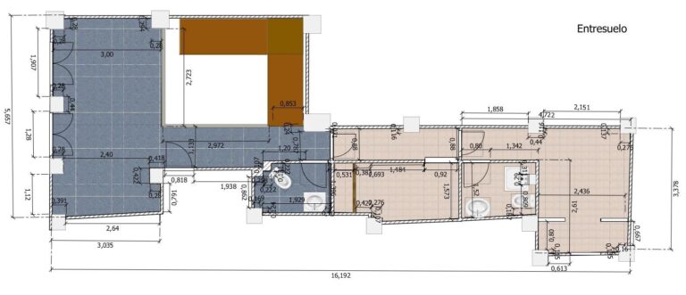🏡 Entresuelo: Distribución óptima para una vivienda de tres dormitorios, baño completo, vestidor y cocina. Su diseño actual como oficina permite una transformación sencilla y económica.