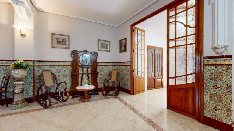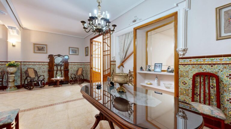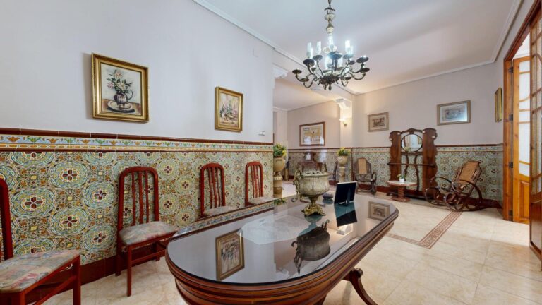 2 comedores, uno con cerámica valenciana y un salón extraordinario lleno de luz, gracias a la cristalera que da acceso al espectacular patio interior.
