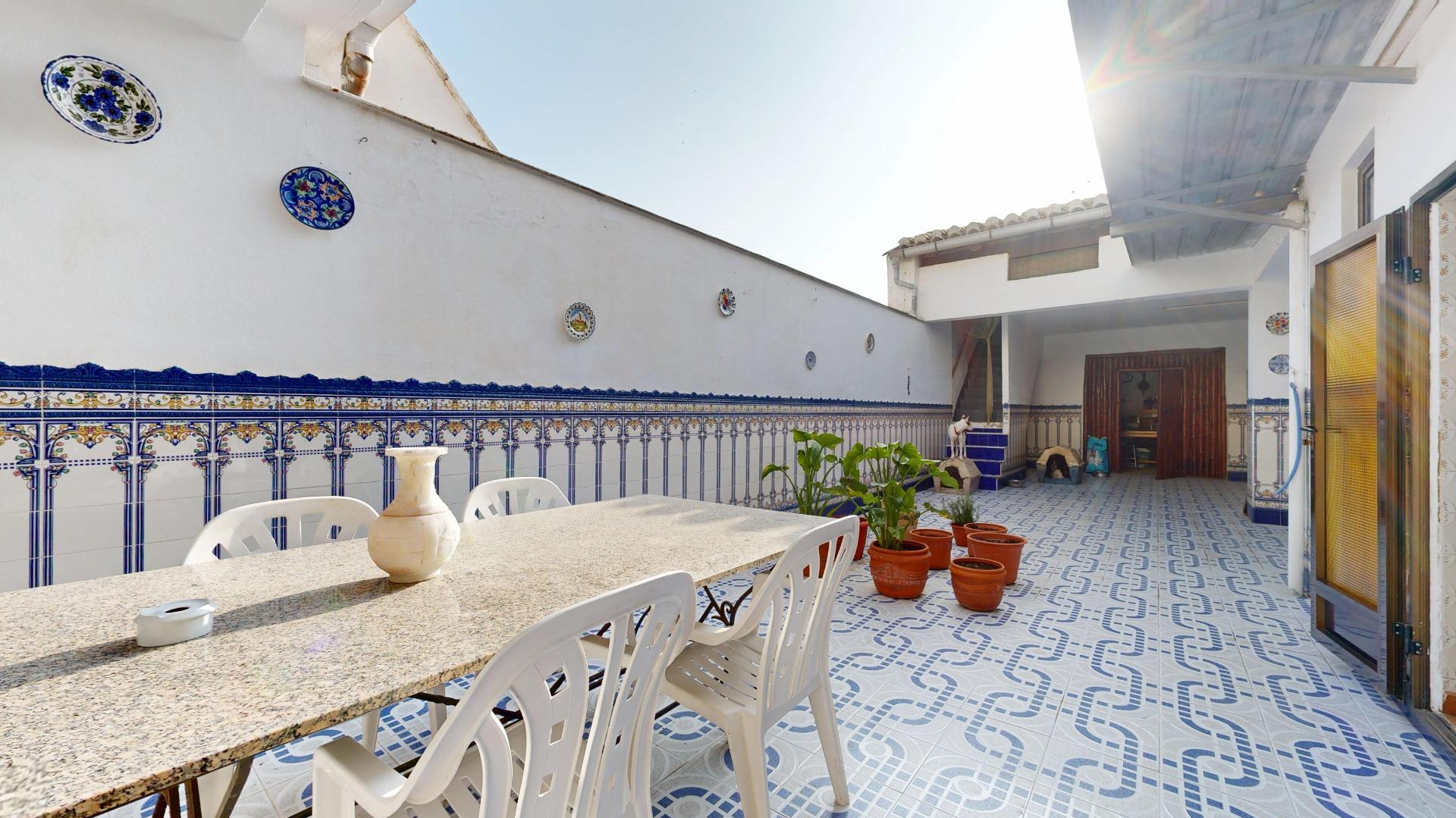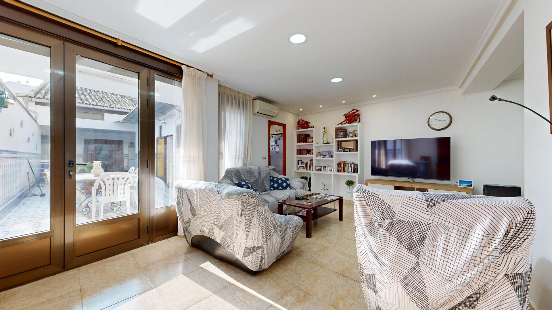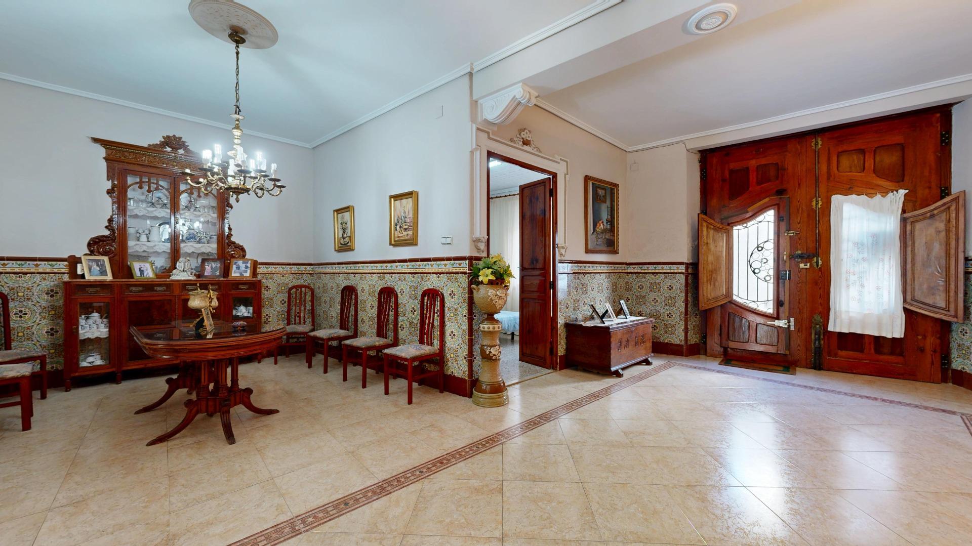 2 comedores, uno con cerámica valenciana y un salón extraordinario lleno de luz, gracias a la cristalera que da acceso al espectacular patio interior.