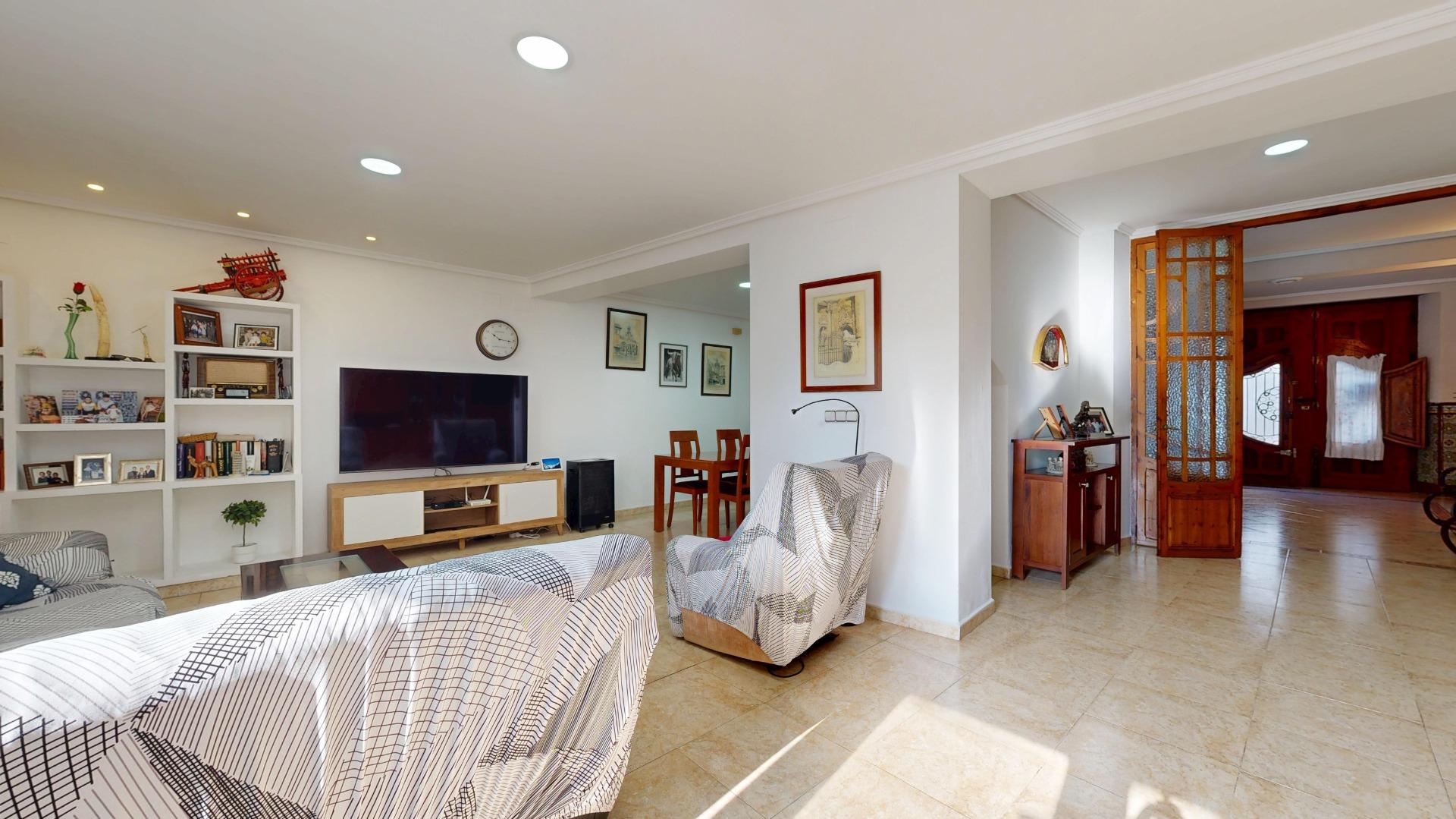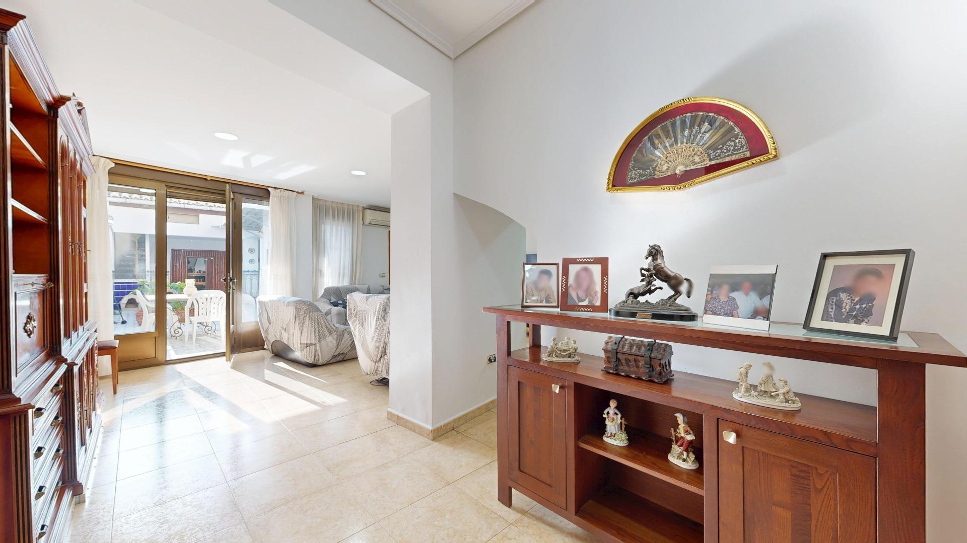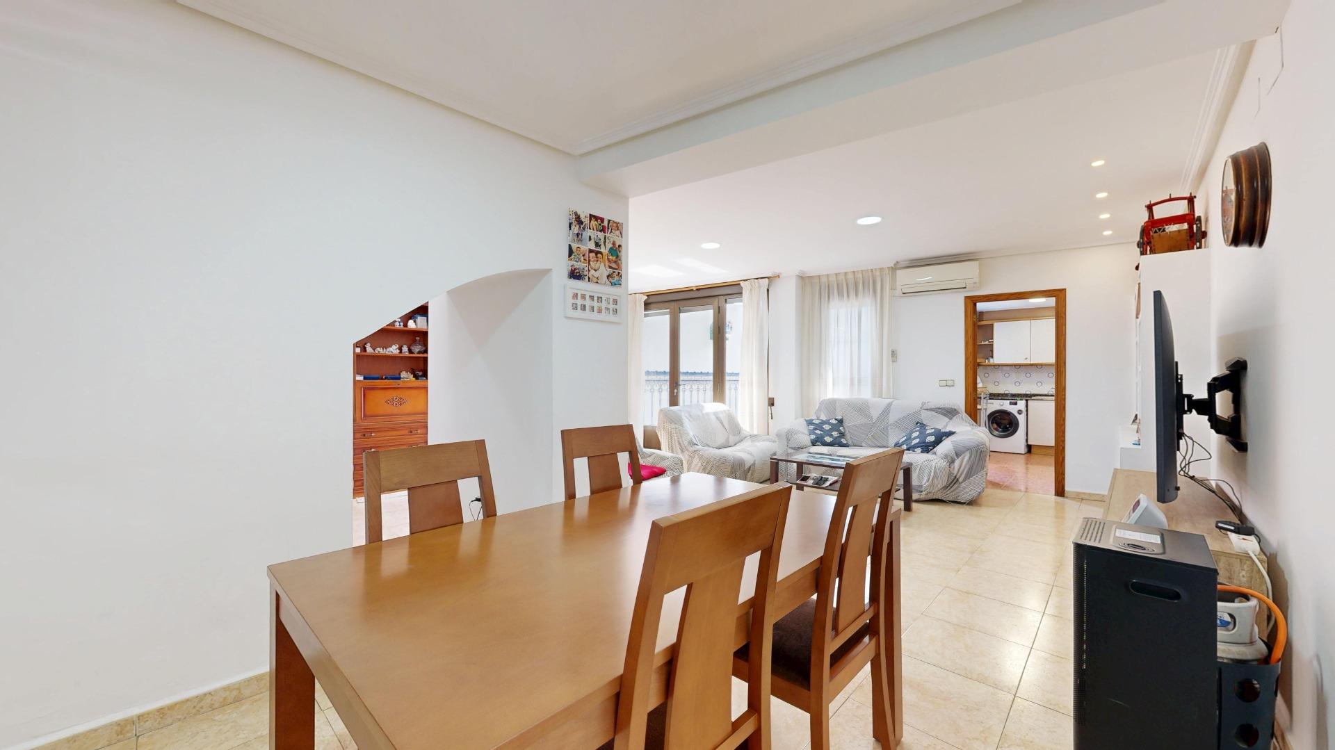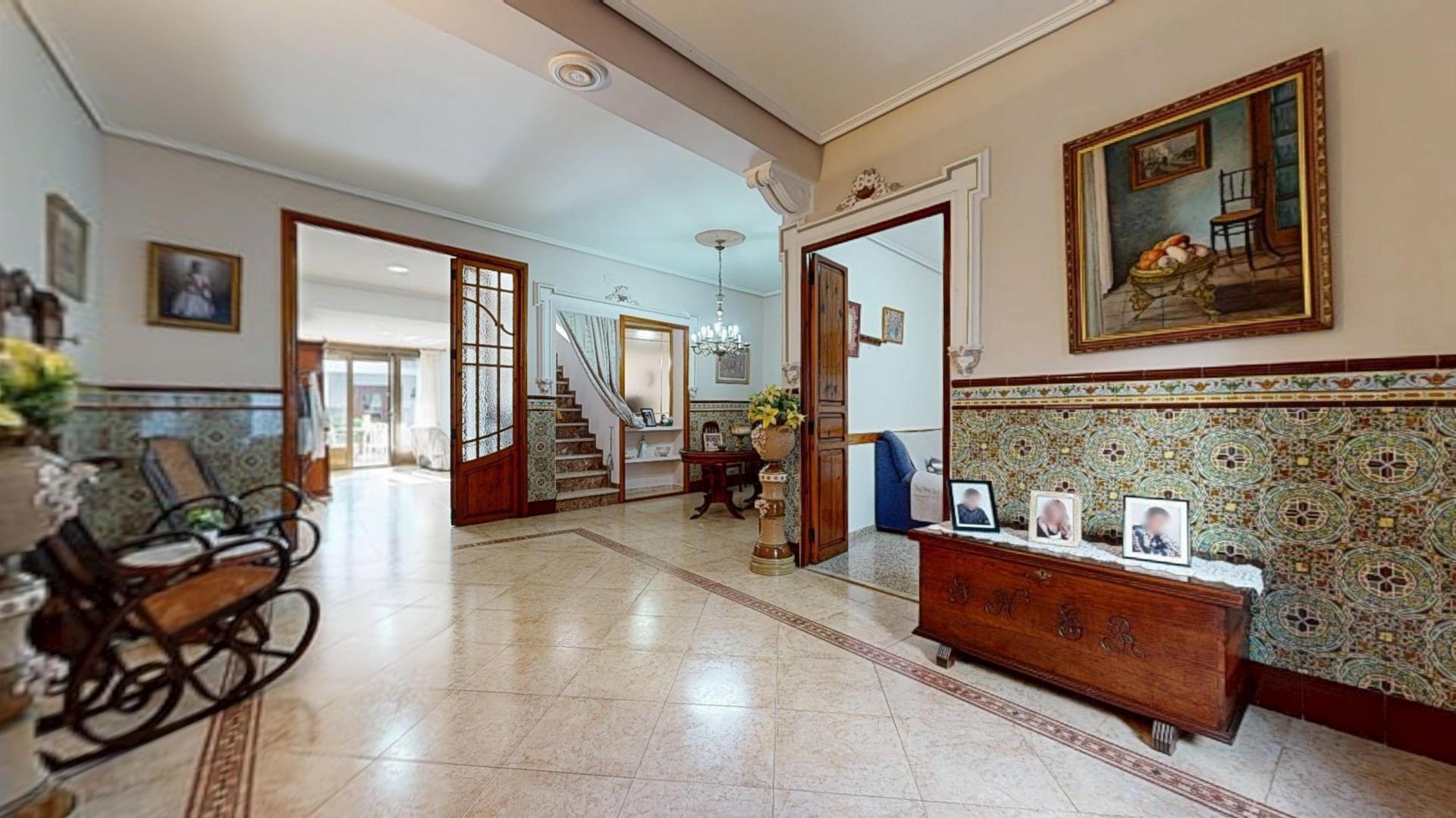 2 comedores, uno con cerámica valenciana y un salón extraordinario lleno de luz, gracias a la cristalera que da acceso al espectacular patio interior.