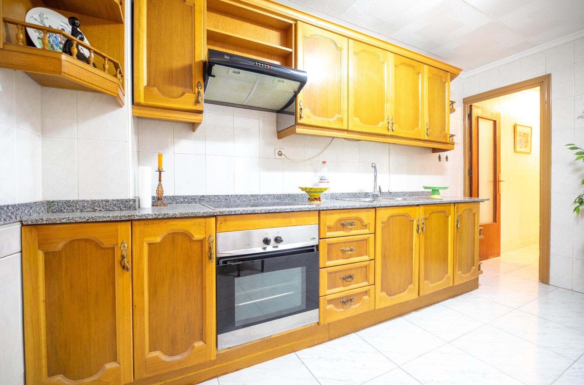 La cocina, equipada con muebles funcionales, está pensada para un uso práctico y eficiente, adaptándose perfectamente a las necesidades diarias.