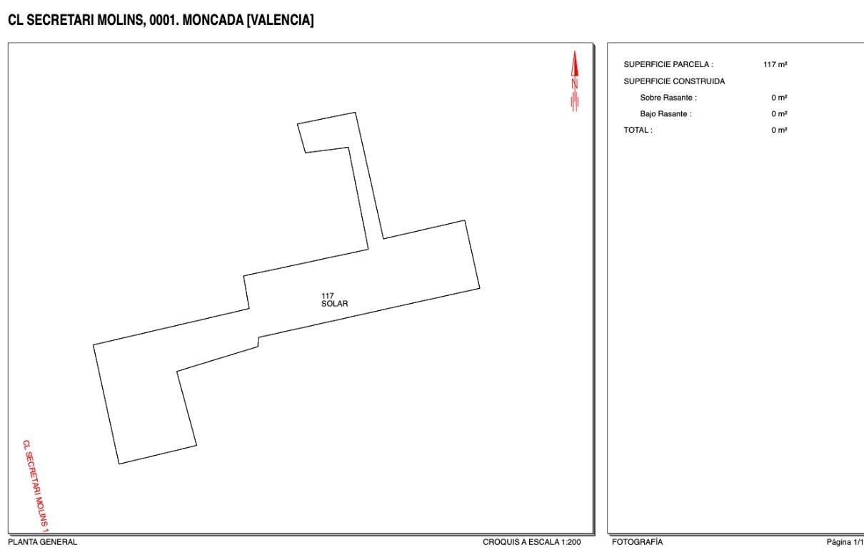 En Venta Solar Urbano de 117m2 según Catastro, ubicado en pleno centro de Moncada, en frente del Mercado