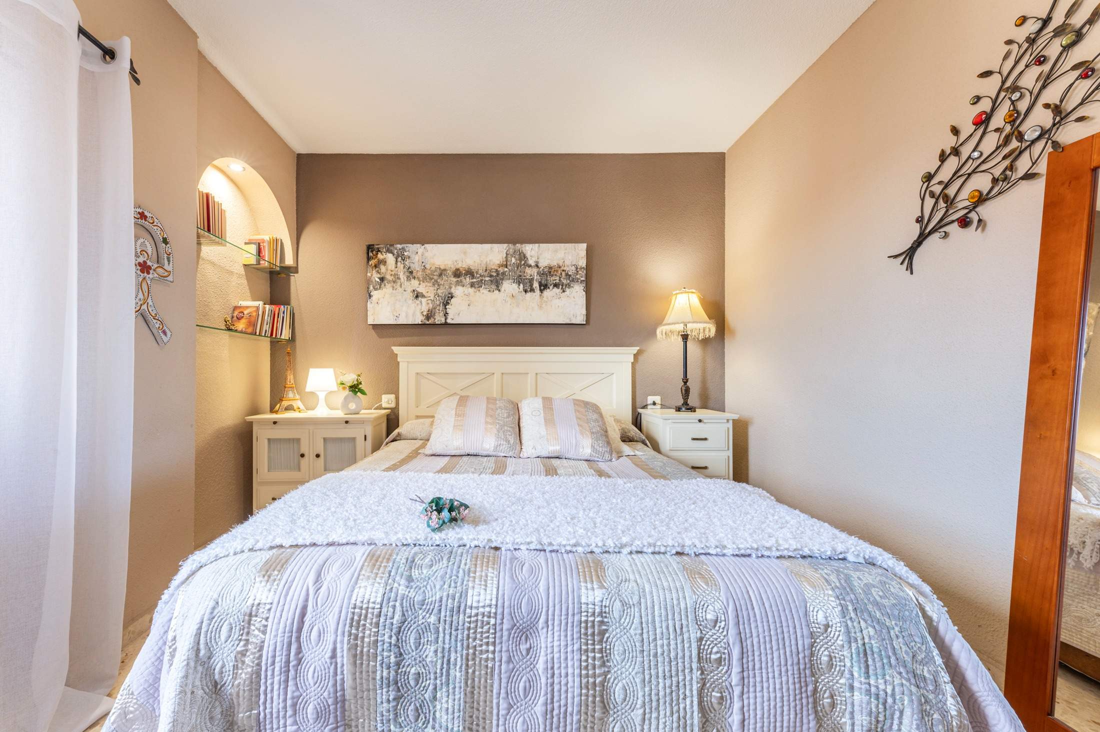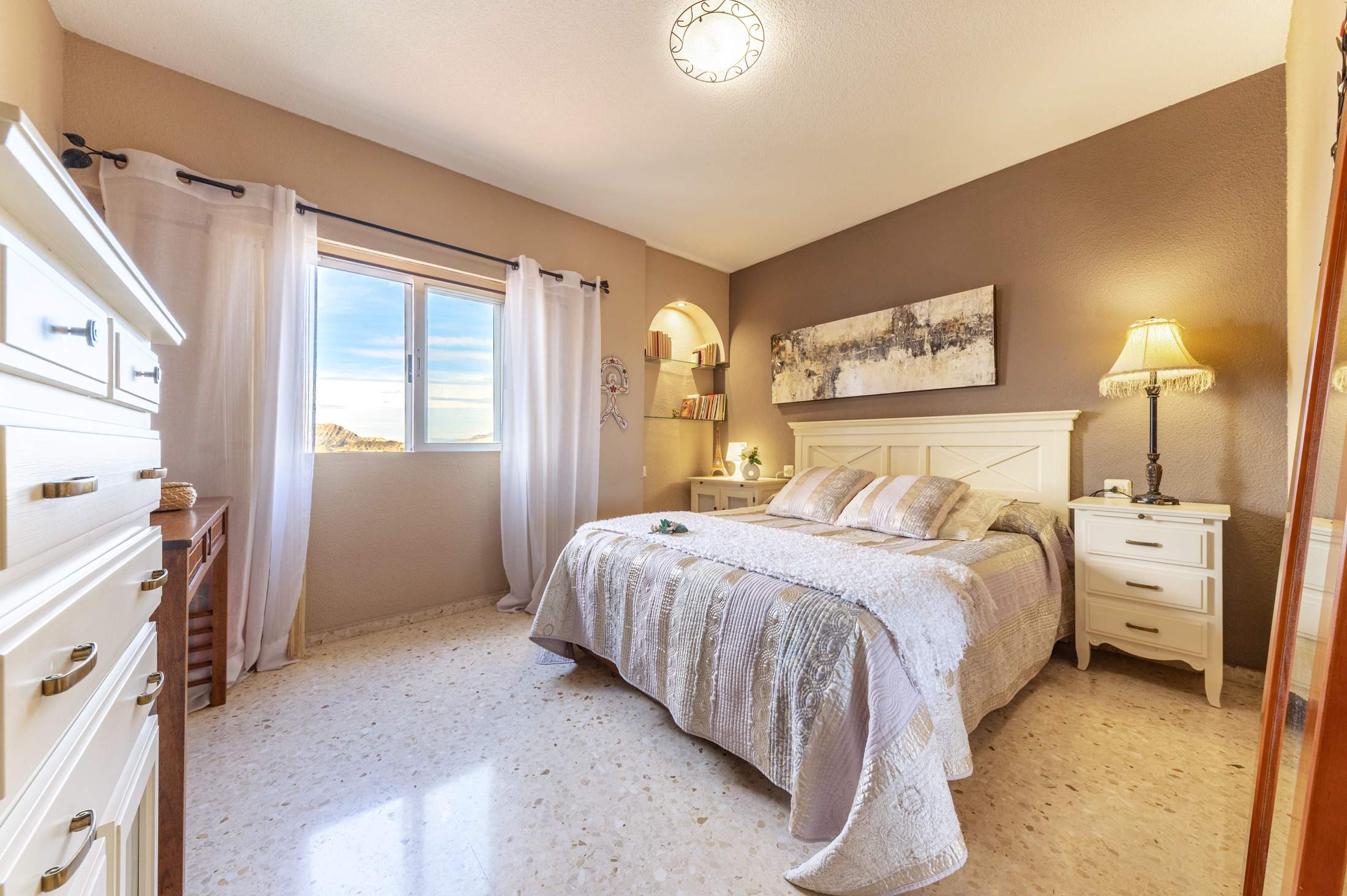 Actualmente la vivienda dispone de tres dormitorios, un enorme salón y un baño de grandísimas dimensiones, resultado de una reforma muy bien pensada para su uso actual.
