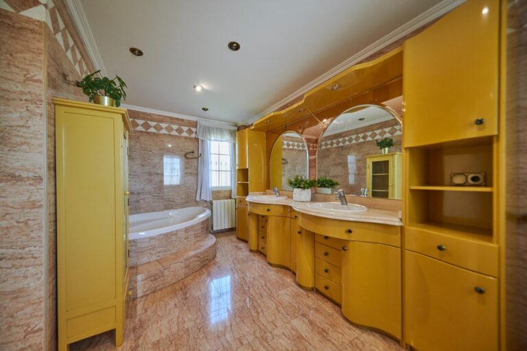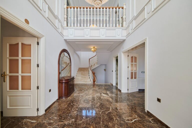 💡 Diseño clásico y materiales nobles: mármol, molduras y techos altos