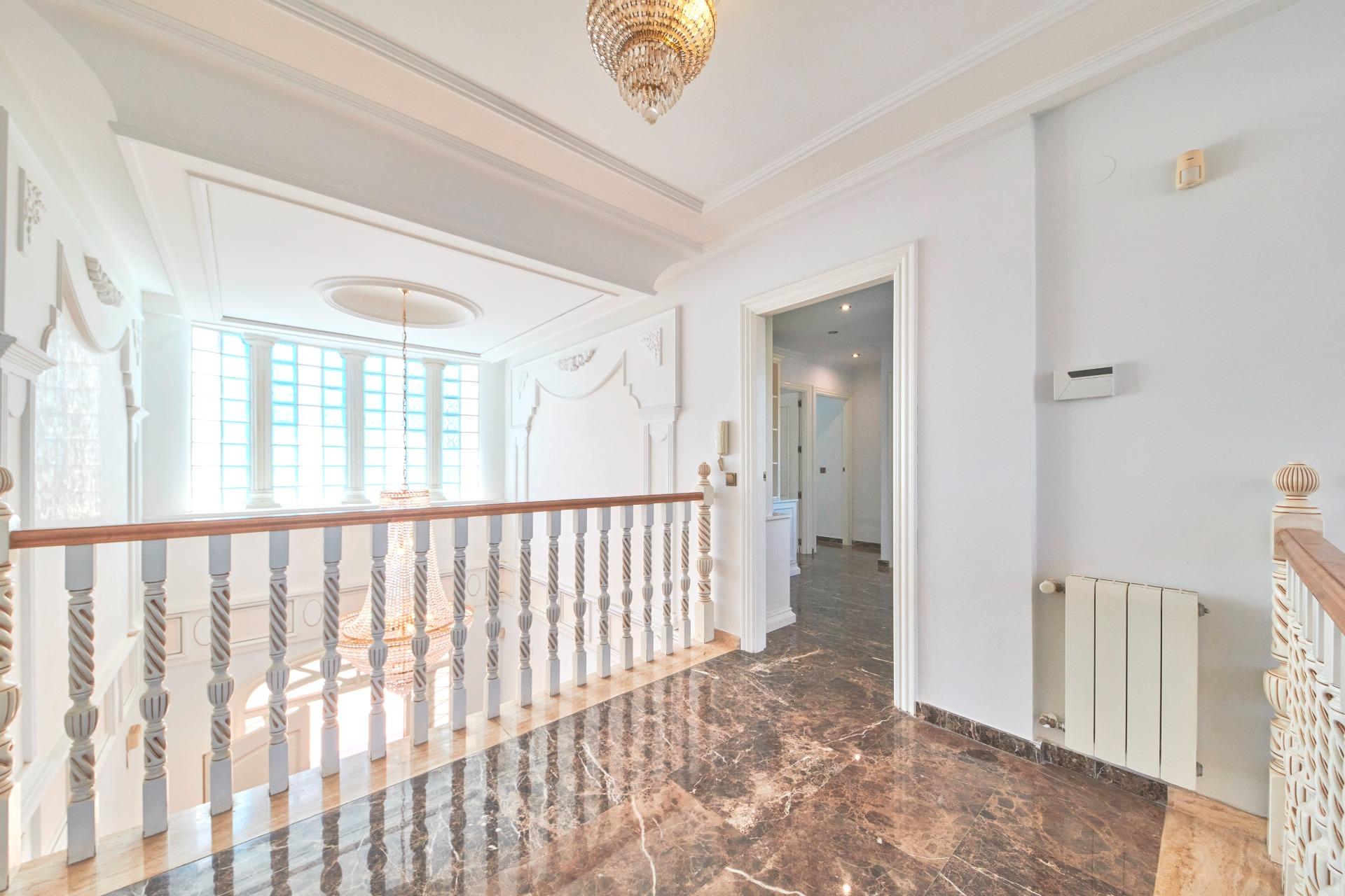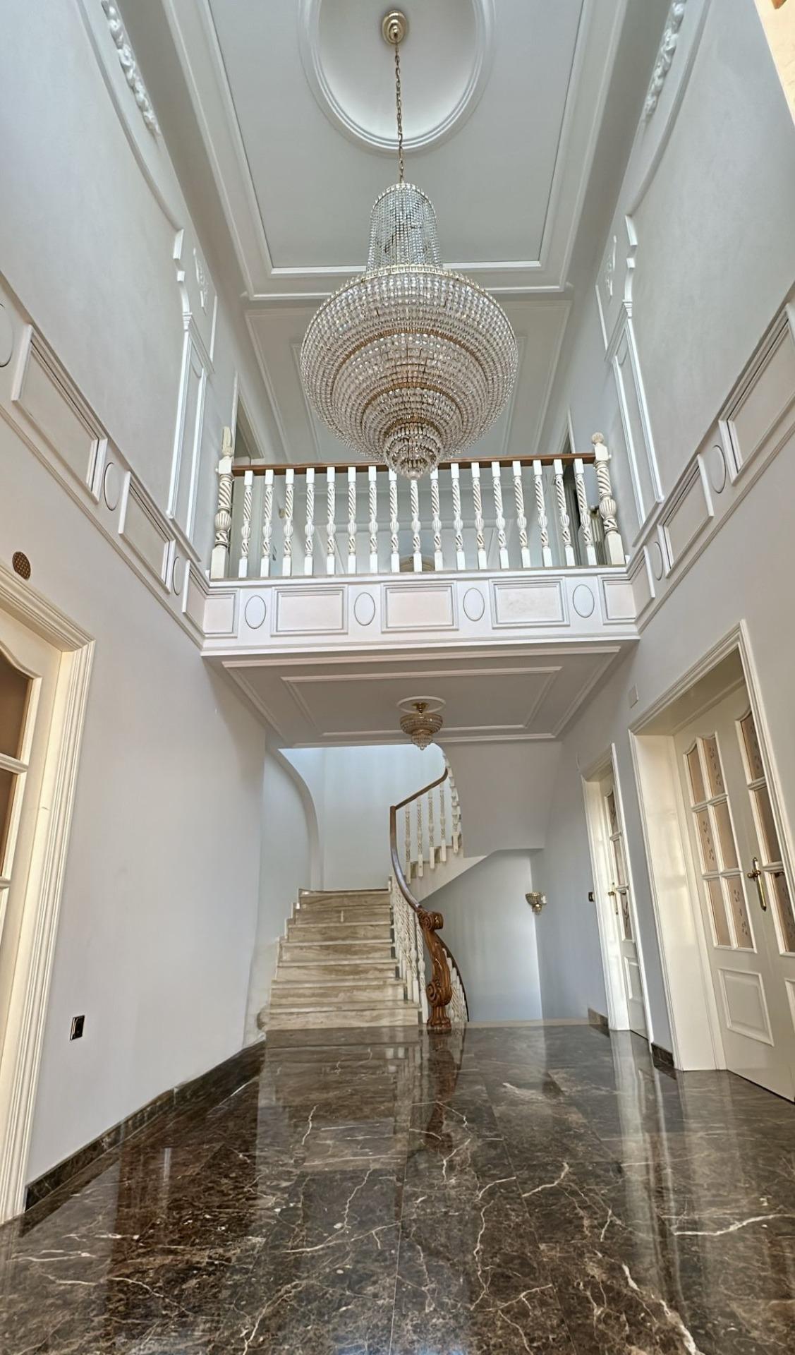 💡 Diseño clásico y materiales nobles: mármol, molduras y techos altos