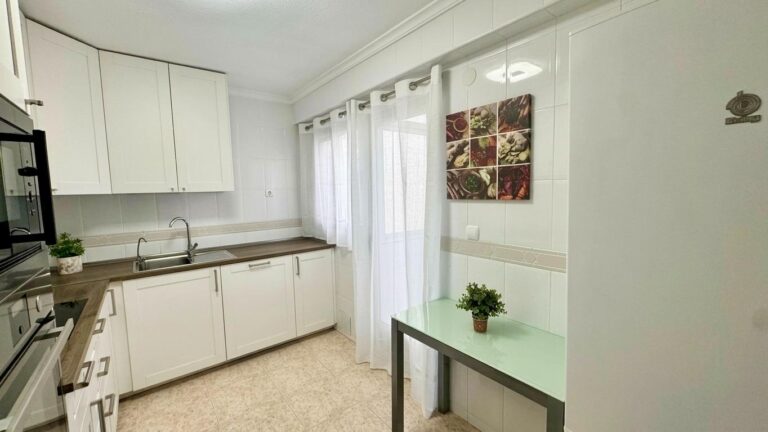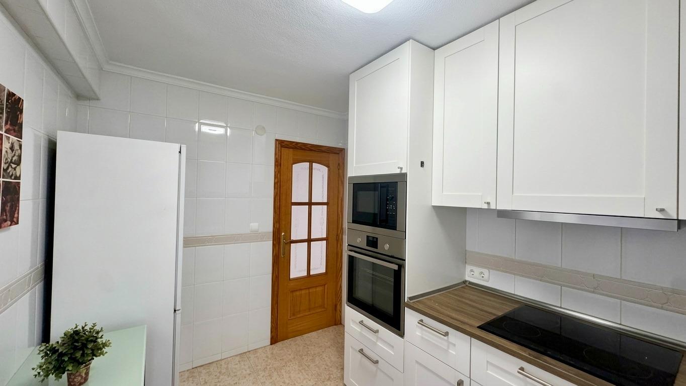 🍽️ La cocina es espaciosa y funcional, con mobiliario renovado y acceso a una práctica galería, ideal como zona de lavado y almacenamiento.