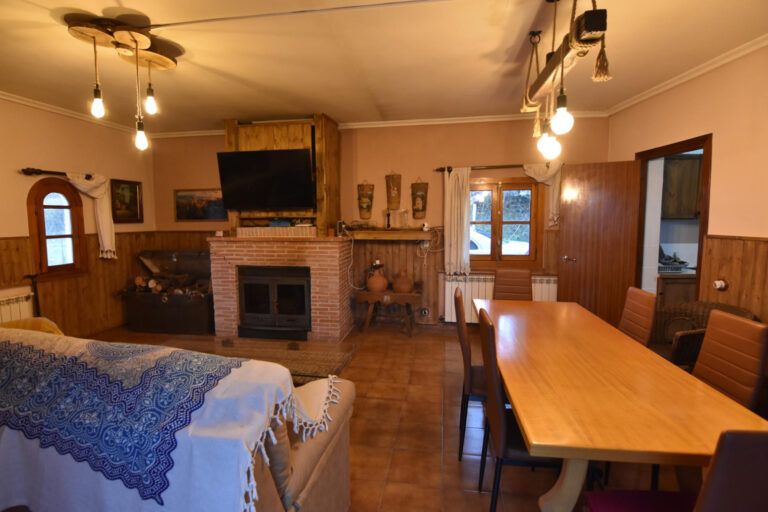 En la planta baja se encuentra el salón comedor con una maravillosa chimenea de casete que da servicios al salón, con acceso directo a la cocina independiente, un baño &;completo reformado para tener amplitud y acceso fácil además de 2 habitaciones de gran tamaña, una de ellas con litera y la otra con una cama grande .