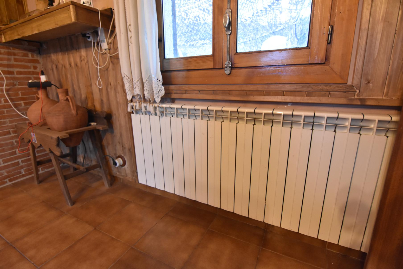 La finca es autosuficiente, con agua y luz a coste cero, y dispone de calefacción por radiadores mediante caldera de gasoil, garantizando confort durante todo el año.