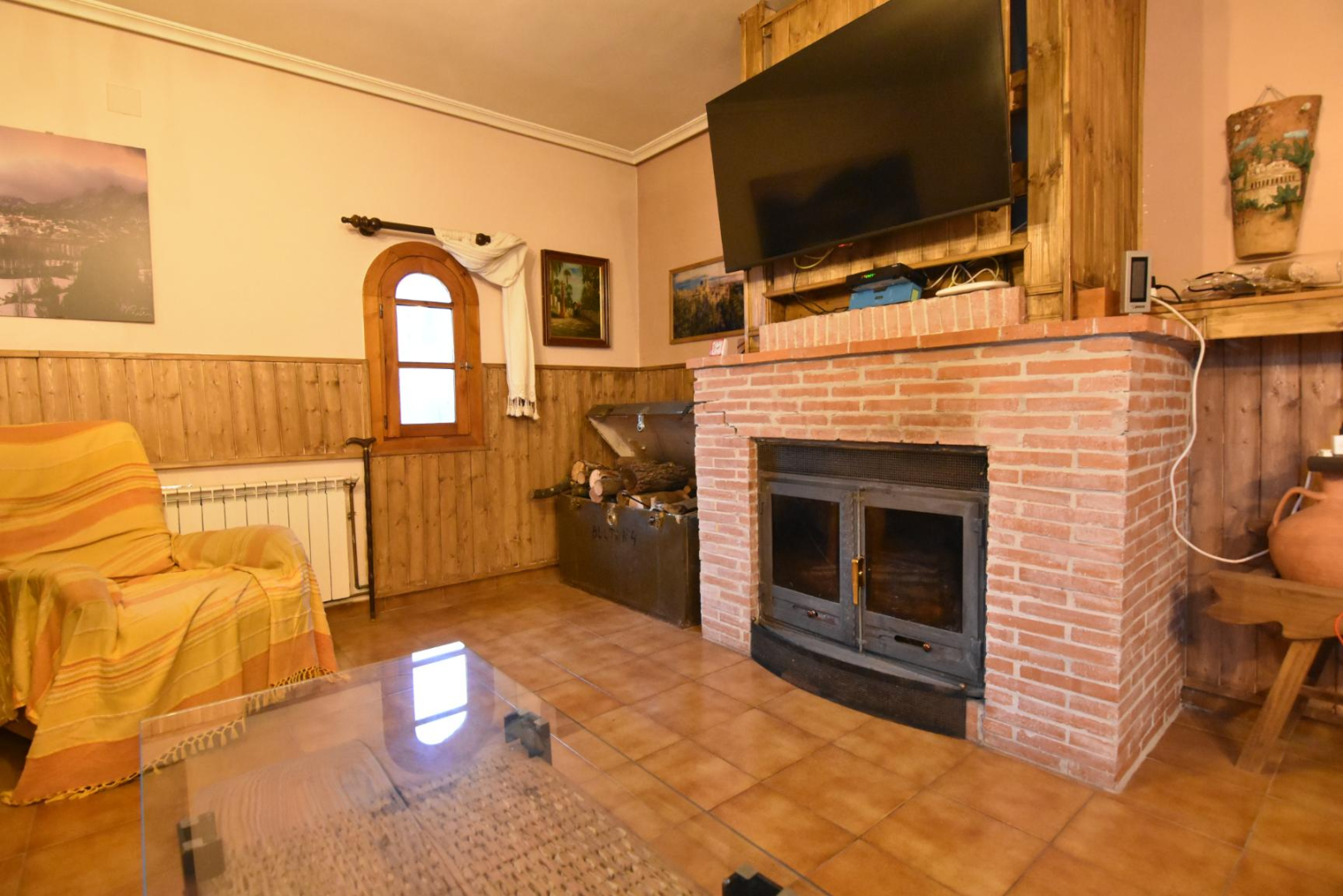 En la planta baja se encuentra el salón comedor con una maravillosa chimenea de casete que da servicios al salón, con acceso directo a la cocina independiente, un baño &;completo reformado para tener amplitud y acceso fácil además de 2 habitaciones de gran tamaña, una de ellas con litera y la otra con una cama grande .