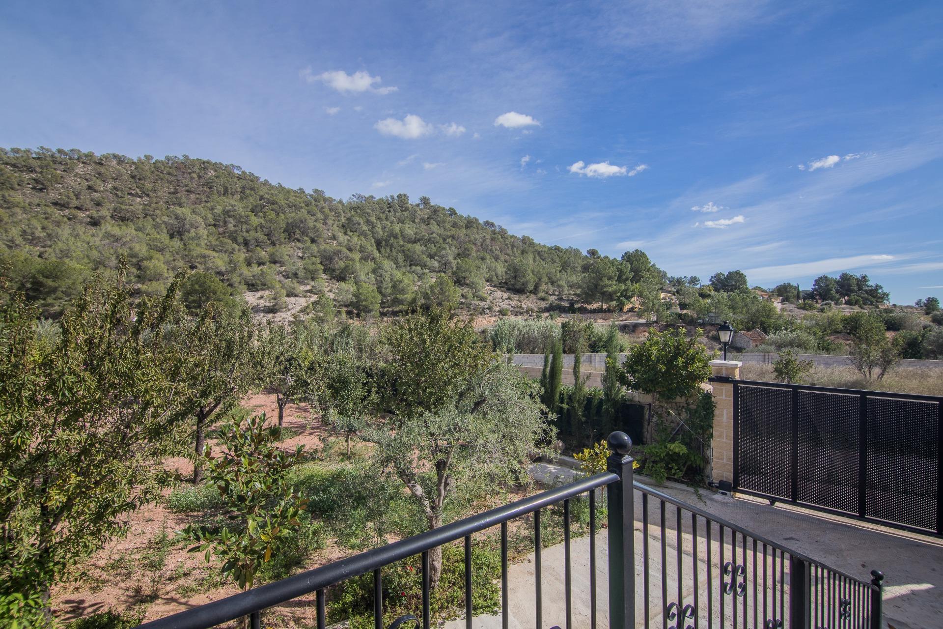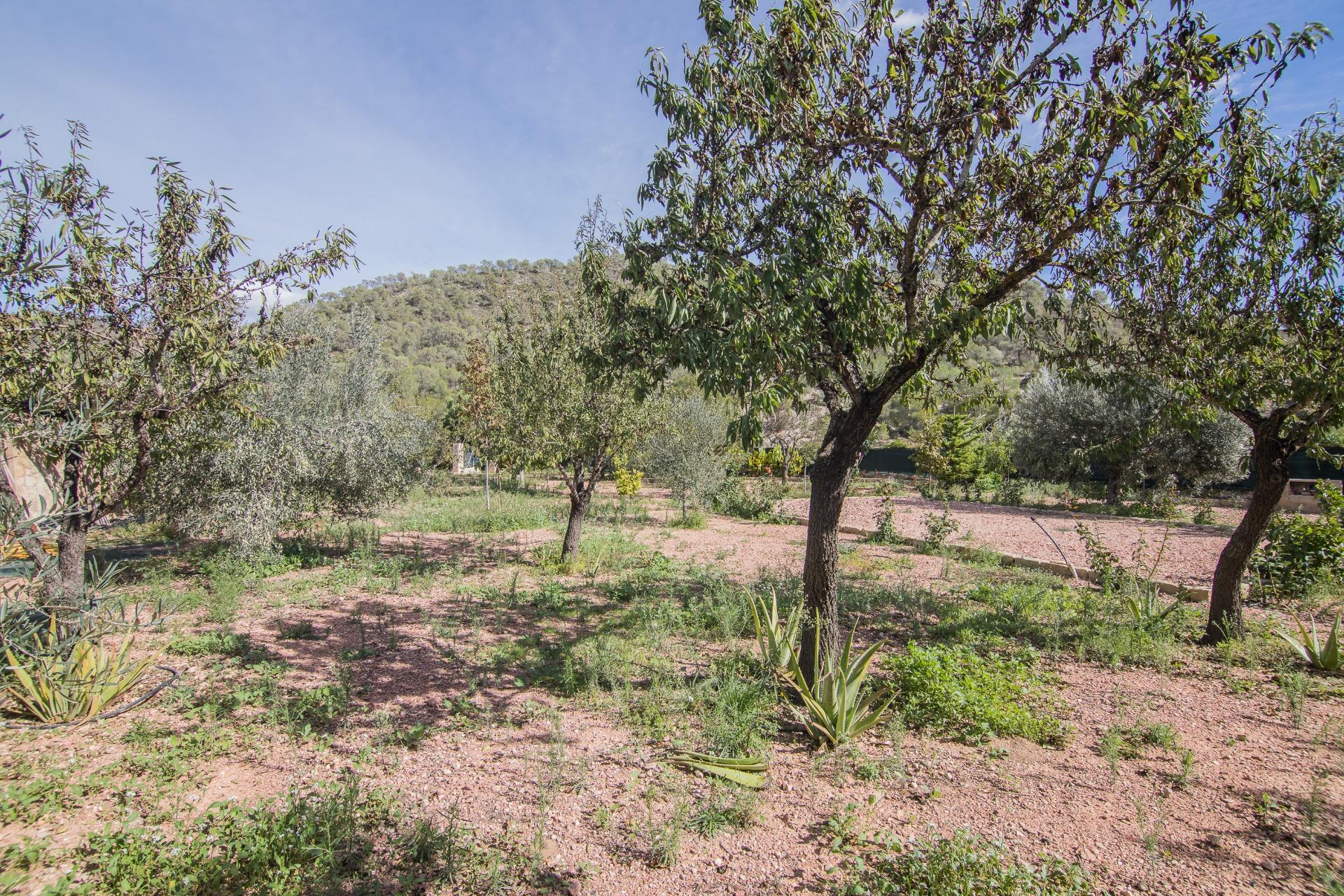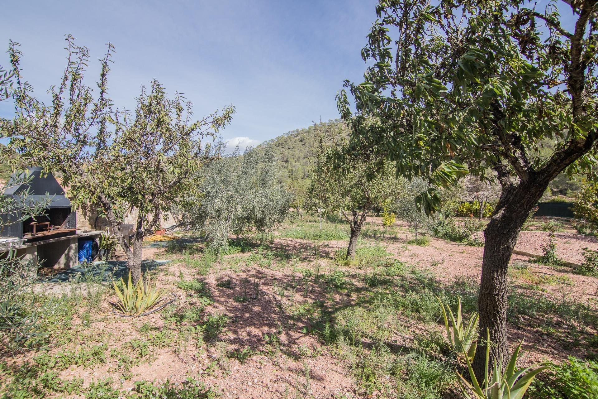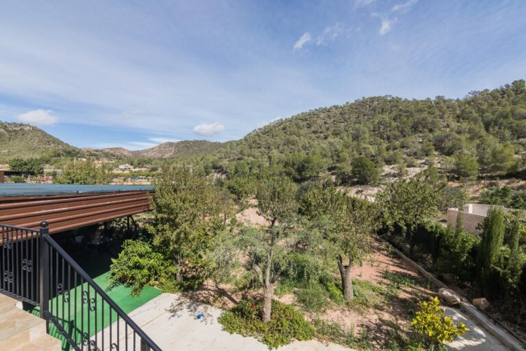 Fuera, más de 1.400 m² de parcela independiente te esperan con vistas abiertas a la montaña, rodeada de vegetación mediterránea y caminos que invitan a caminar, respirar y reconectar.