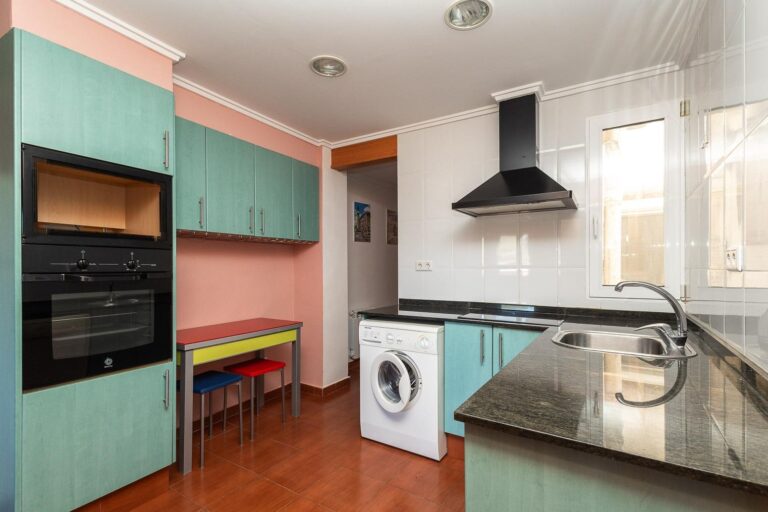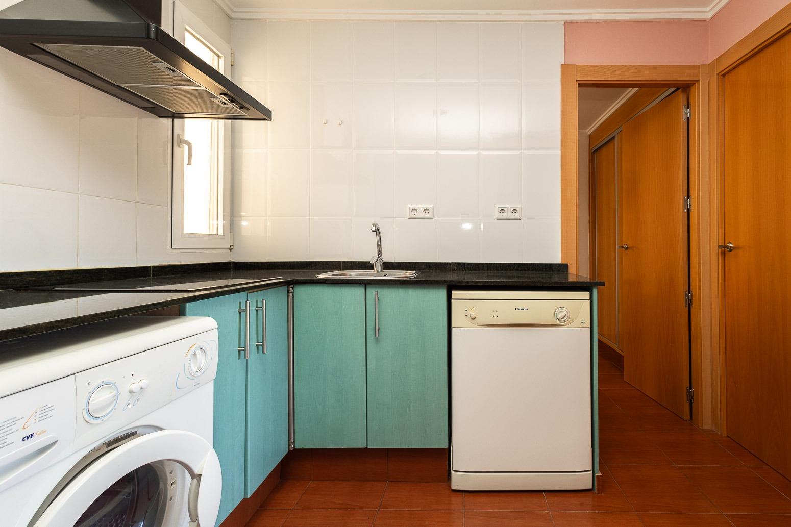 El piso está distribuido en 3 habitaciones, 1 de ellas doble y todas ellas con armarios empotrados. Además cuenta con 1 baño completo, un luminoso salón comedor con cocina americana totalmente equipada. También tiene lavadora y lavavajillas.
