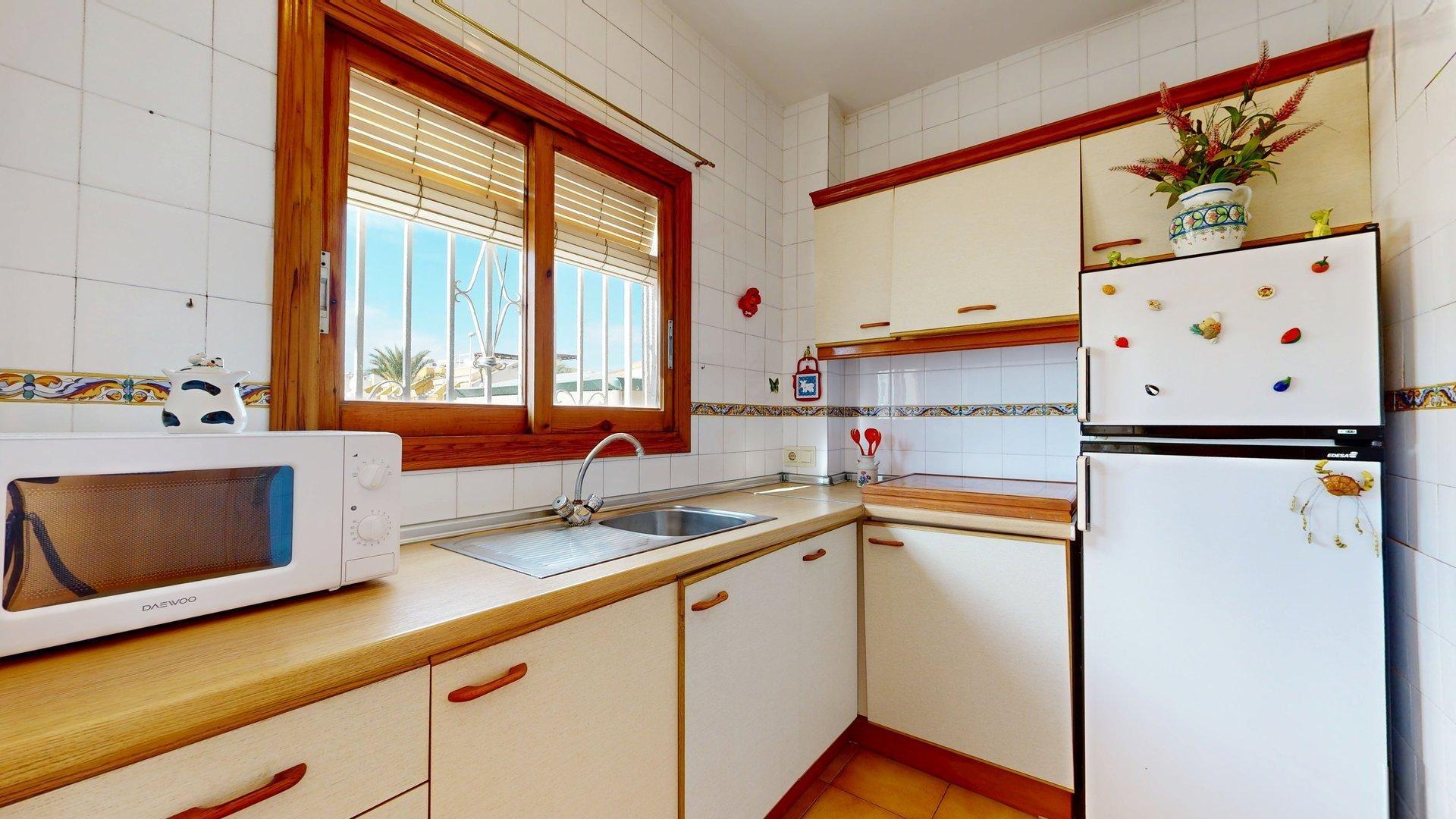 Accedemos a la vivienda por el gran patio de entrada y pasamos a la cocina, independiente y completamente equipada. A continuación, nos encontramos con el salón comedor, espacioso y bañado con luz natural que invita a momentos inolvidables en familia, pero eso no es todo, ¡prepárate para disfrutar en la acogedora terraza de este sol y privilegiado clima que tenemos en LA PLAYA DE ARENALES.