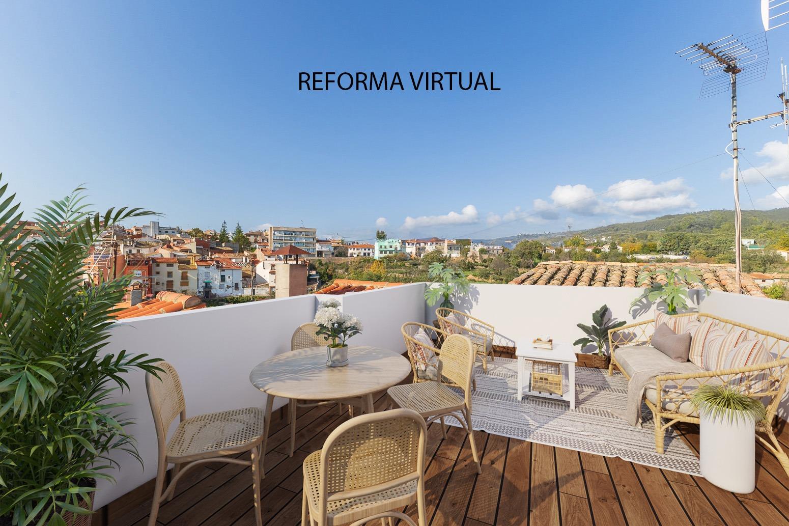 Esta vivienda también dispone el la planta superior de una amplia terraza con vistas despejadas al pueblo y la montaña, ideal para disfrutar en una bonita zona de descanso.