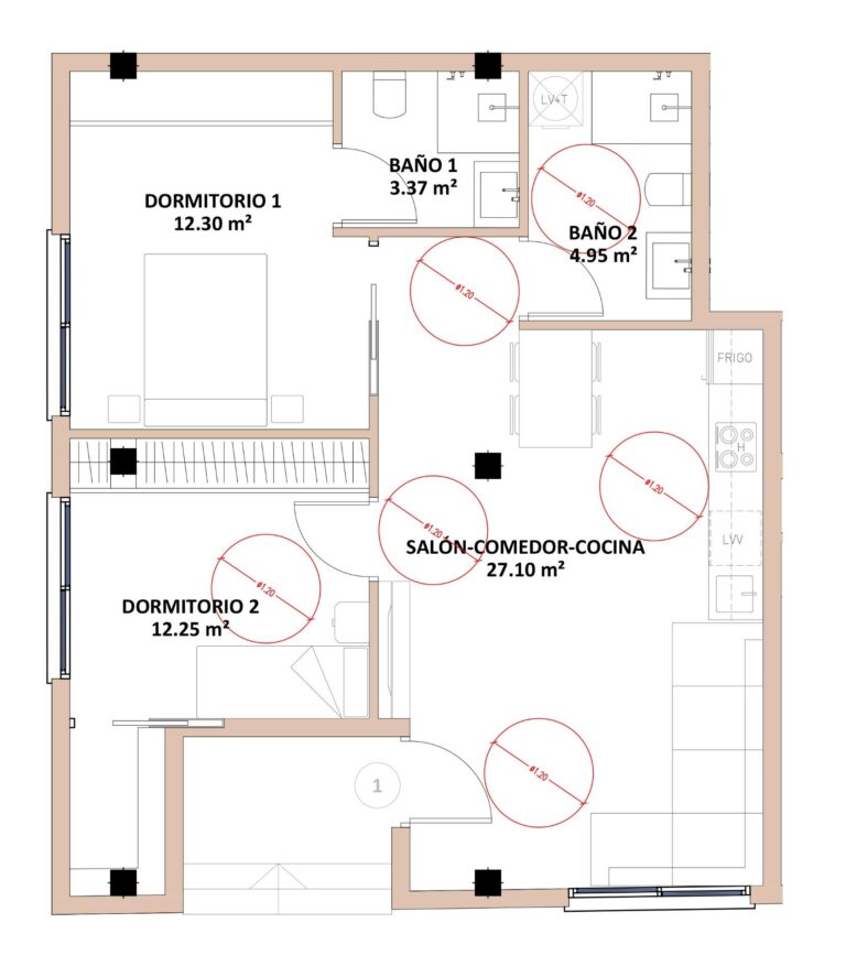 La vivienda cuenta con un luminoso salón-comedor con cocina abierta, creando un espacio moderno y acogedor ideal para el día a día. Dispone de dos dormitorios, ambos con armarios empotrados. El dormitorio principal incluye baño en suite, mientras que el segundo dormitorio cuenta con fácil acceso a un segundo baño completo que da servicio al resto de la vivienda.